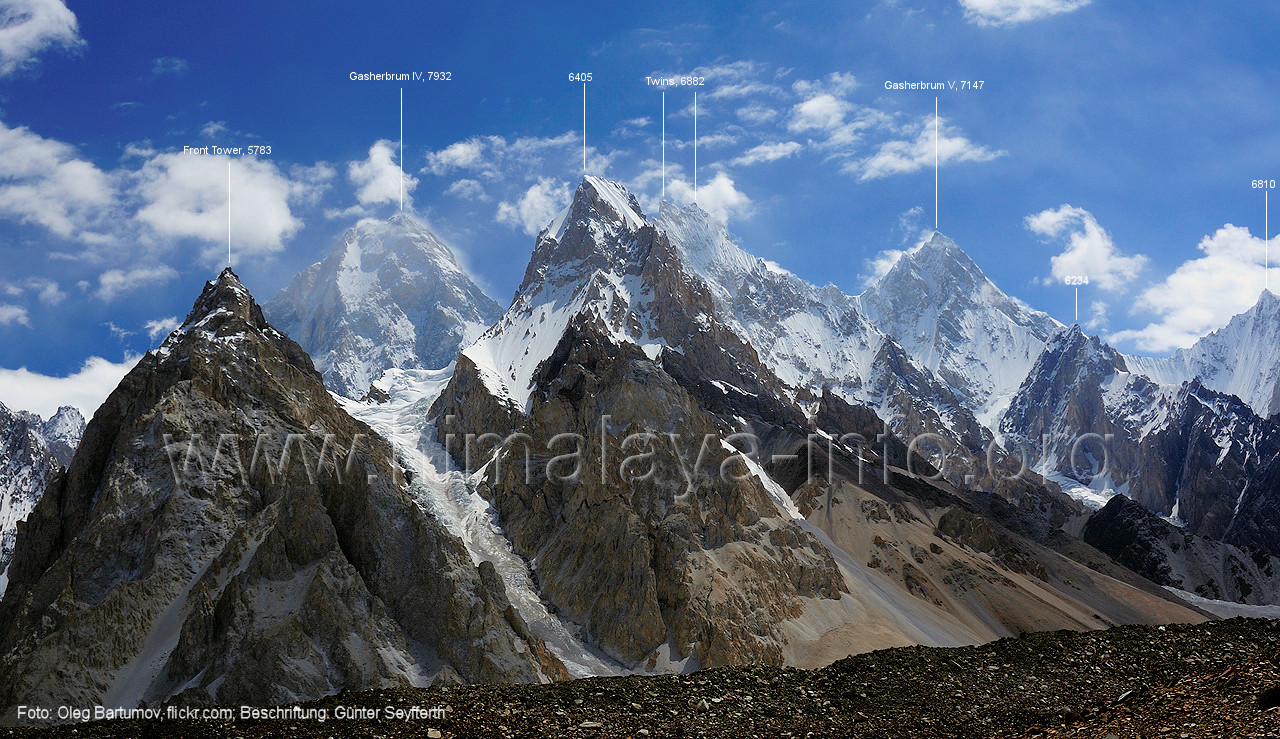 Gasherbrum I (8080 m), Broad Peak (8051 m) und