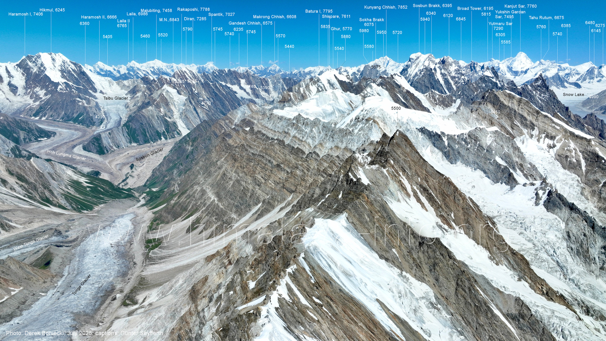 (8125 m), Ganchen (6440 m), Hikmul (6245 m), Haramosh I (7406 m), Haramosh II