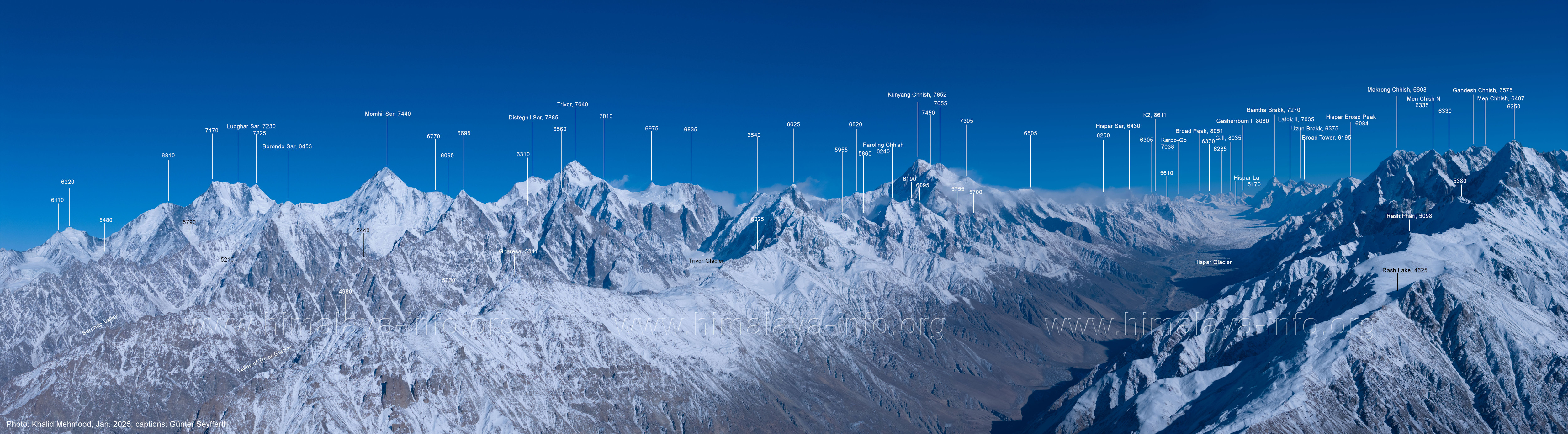 Die Gipfelkette entlang des Südrandes des Hispar-Gletschers