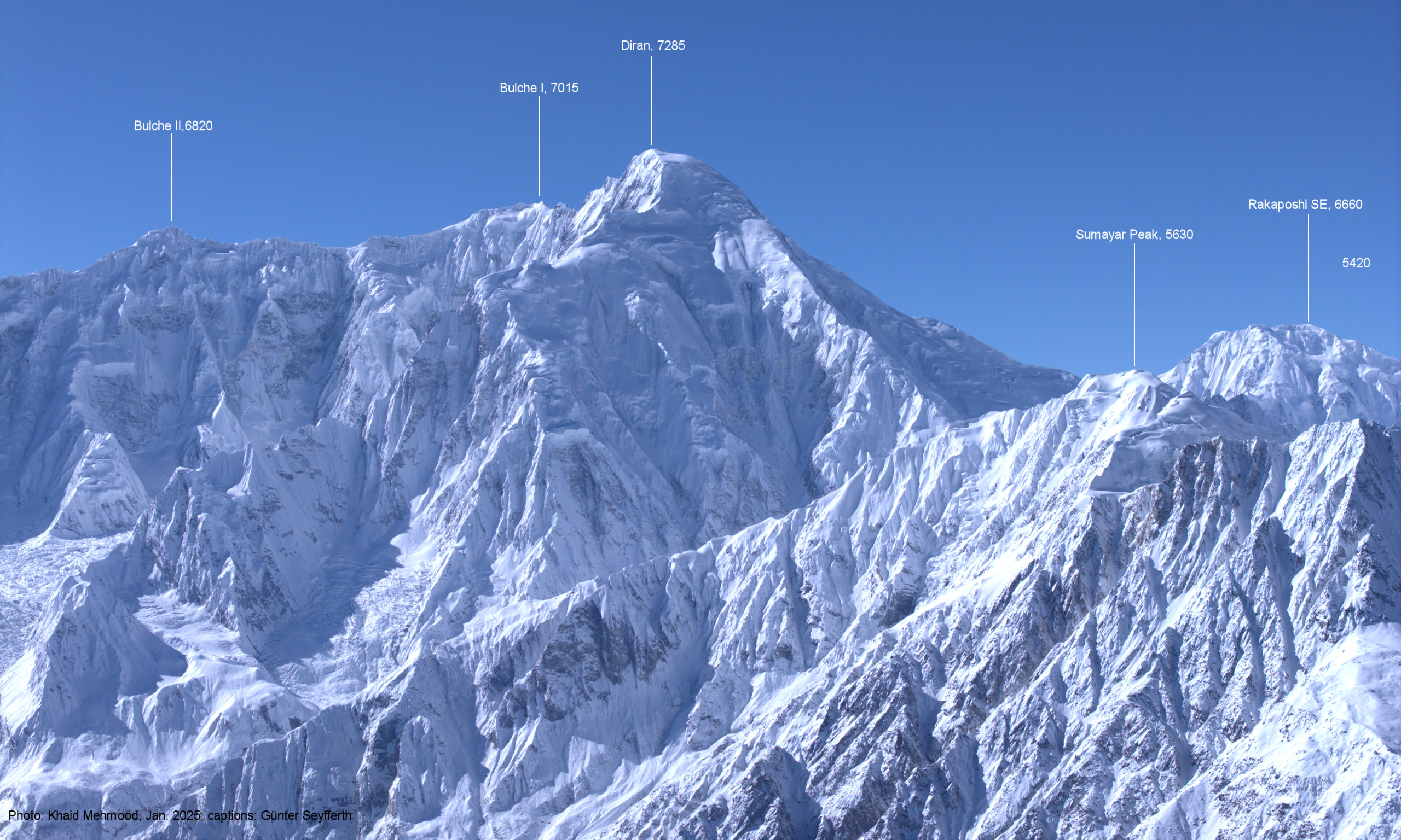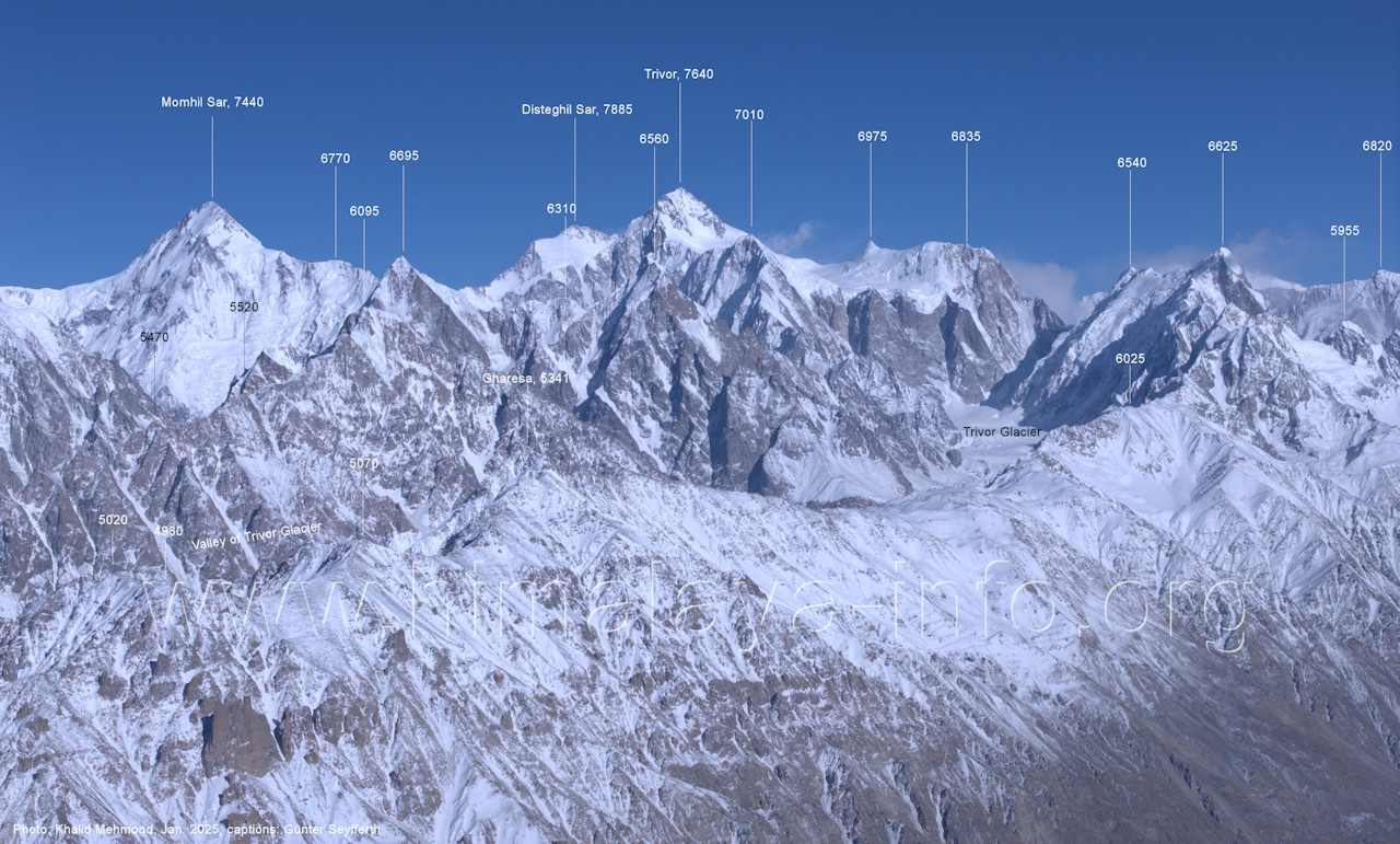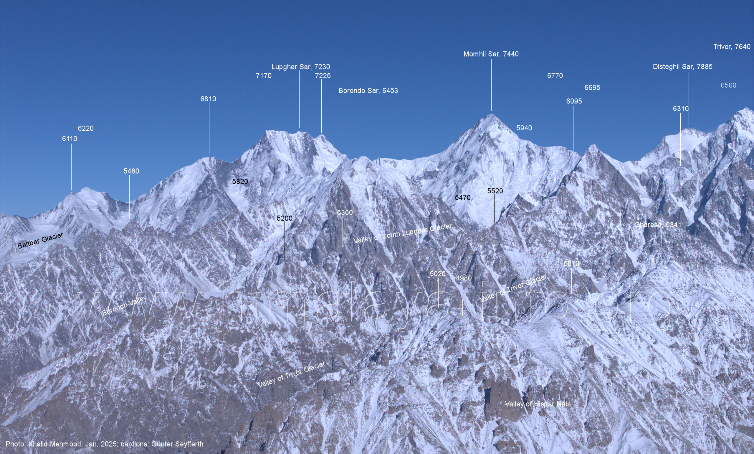 Disteghil Sar (7885 m), Dut Sar (6815 m), Lupghar Sar (7230 m), Momhil Sar