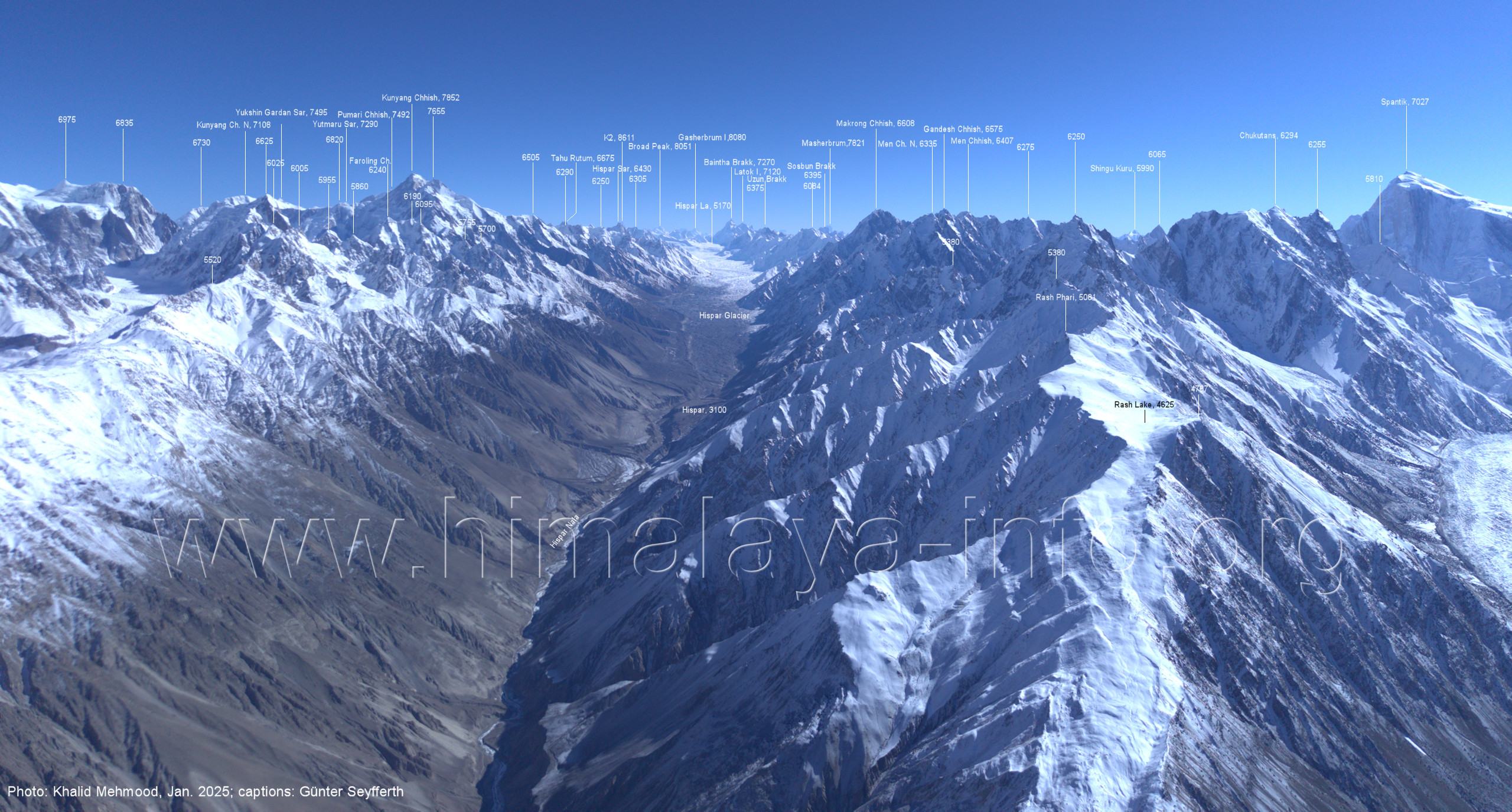 mit den Gipfeln des Hispar Muztagh, dem Tal des