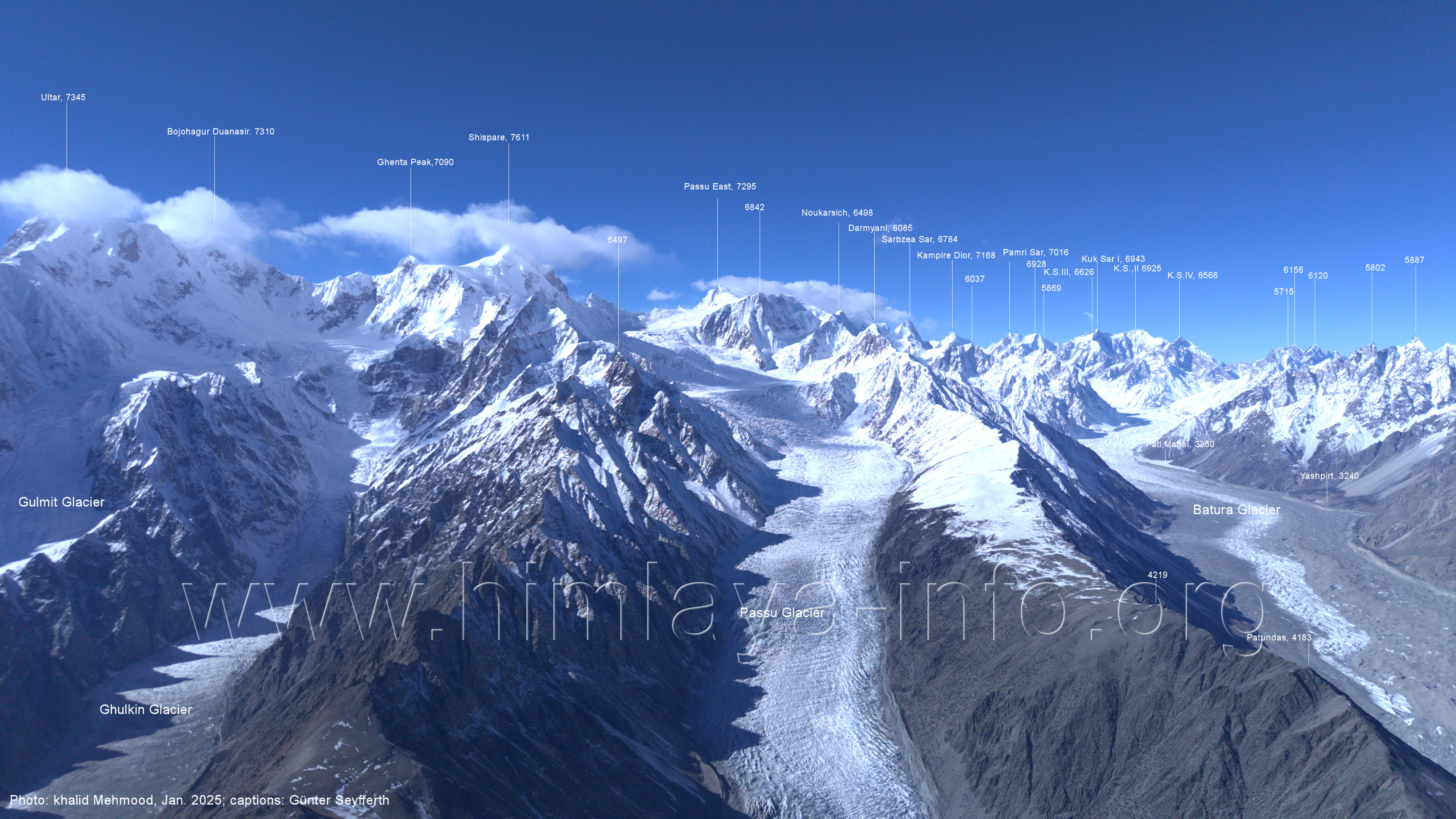 Gulmit-Gletscher, Ghulkin-Gletscher, Passu-Gletscher und Batura-Gletscher
