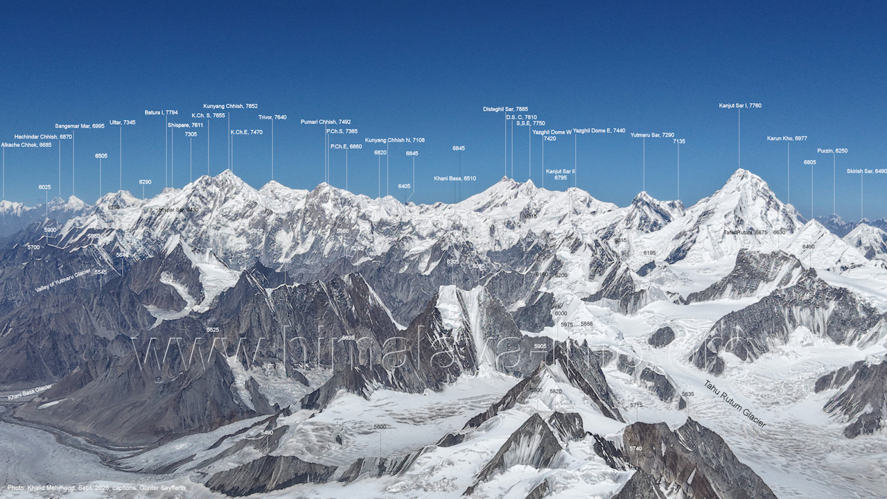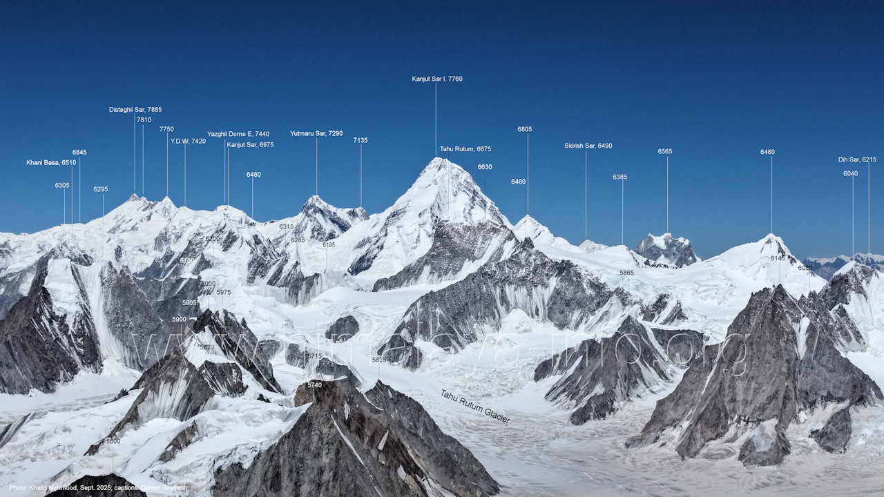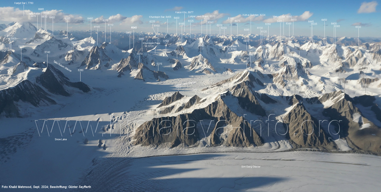 Sar I (7760 m), Tahu Rutum (6675 m), Khurdopin Sar (6455 m), Karun Kho