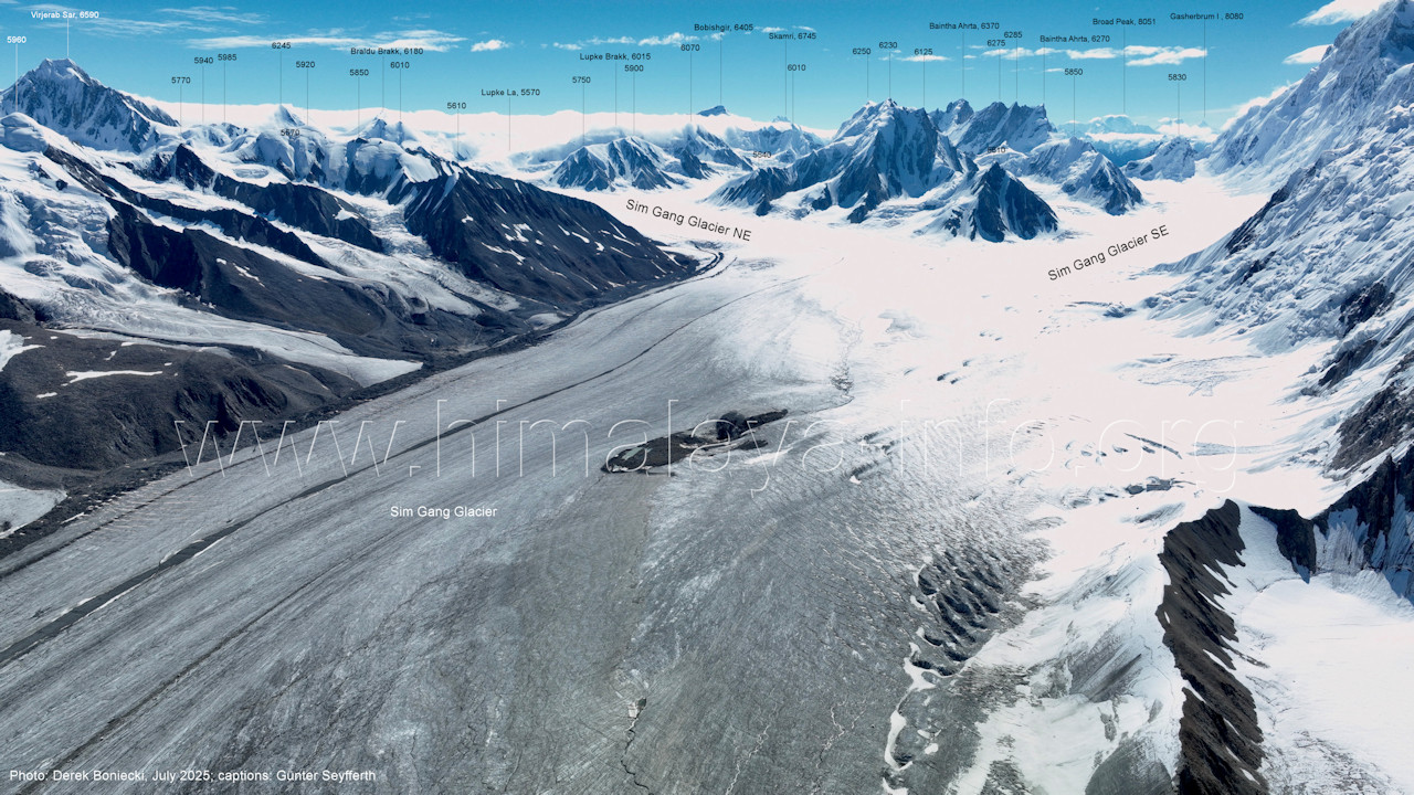 Baintha Brakk. (B4-13) Blick nach Westen mit dem Sim Gang-Gletscher und dem mittleren Bereich des Snow Lake