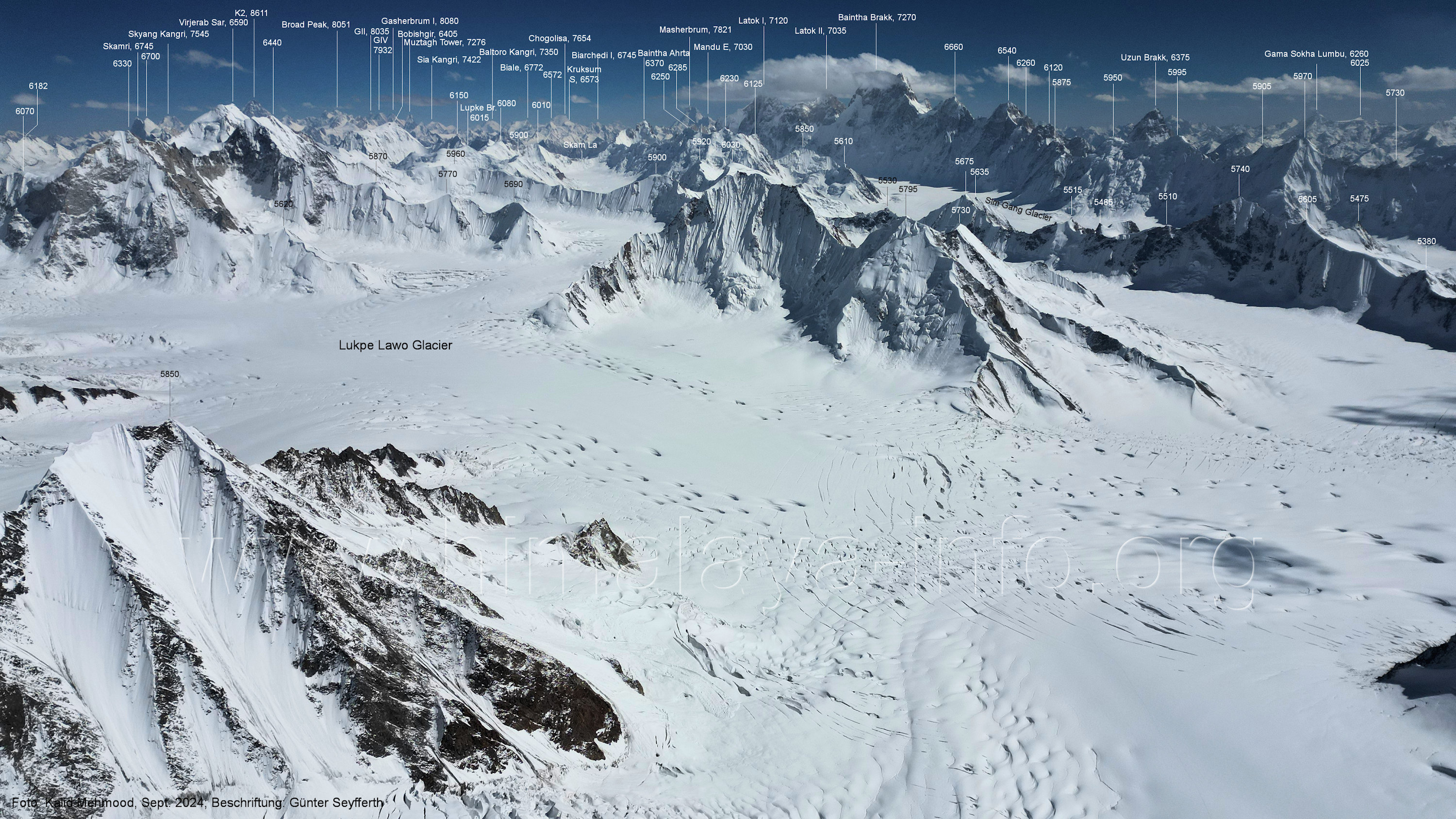 (5440 m) Für alle Bilder dieses Unterabschnitts gilt: Foto: Khalid Mehmood, Beschriftung: Günter Seyfferth (B3-1) Blick nach Südosten in das Tal des Choktoi-Gletschers Dies war der Startplatz der Drohne für