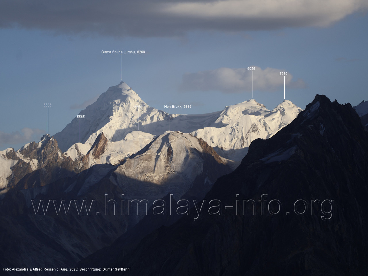 Der Sosbun Brakk ist der höchste Gipfel am Südwestrand des Biafo-Gletschers. Foto: Alexandra & Alfred Ressenig, Aug. 2025; Beschriftung: Günter Seyfferth