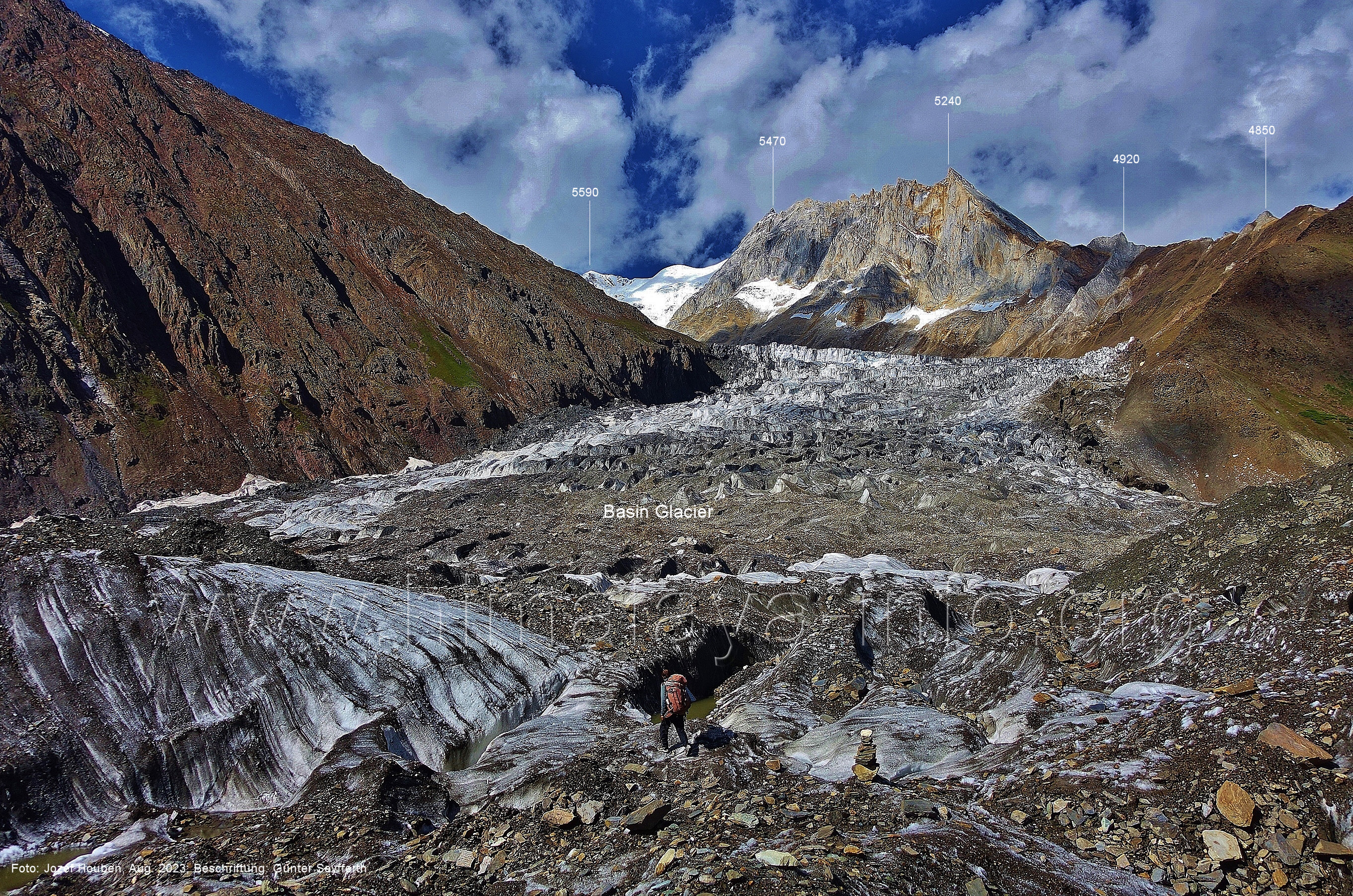 Basin-Gletscher. Foto: Jozef Houben, Aug. 2023; Beschriftung: Günter Seyfferth
