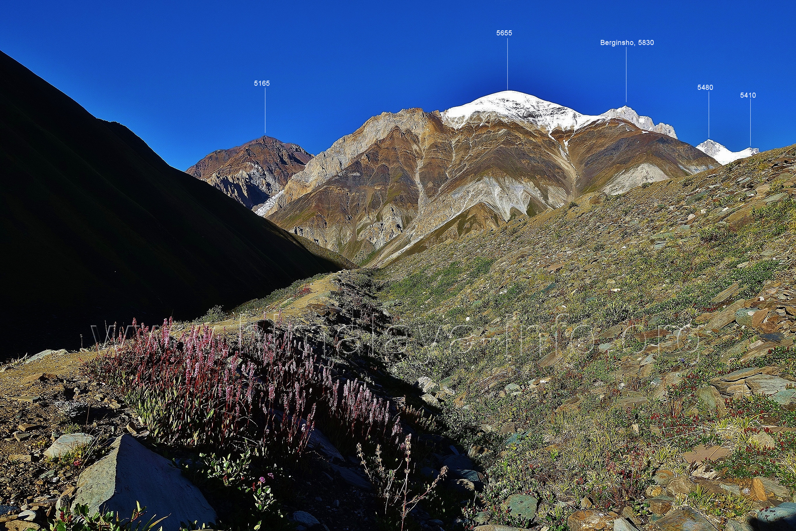 rechts ist der erste der höheren Gipfel, der Berginsho, 5830 m