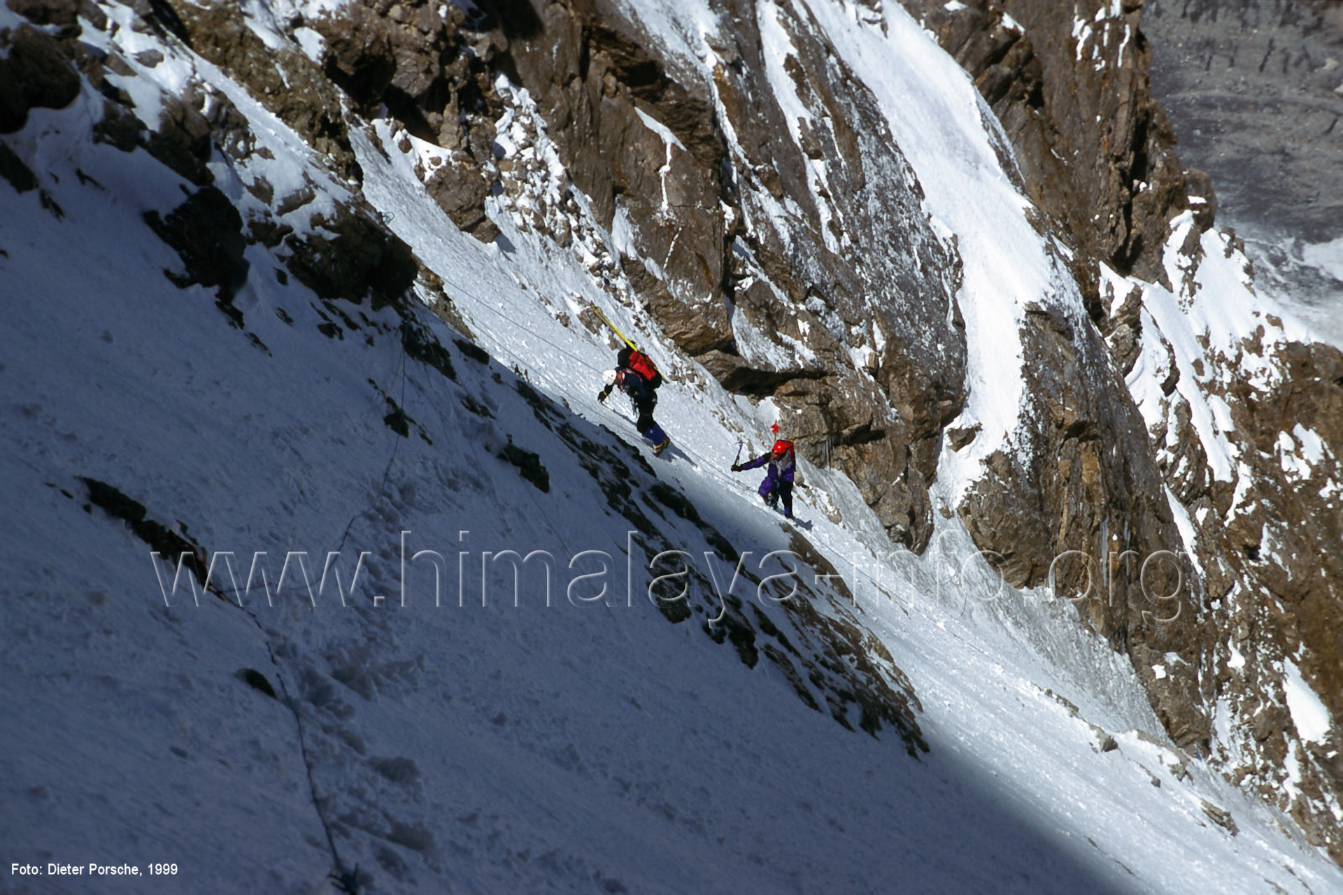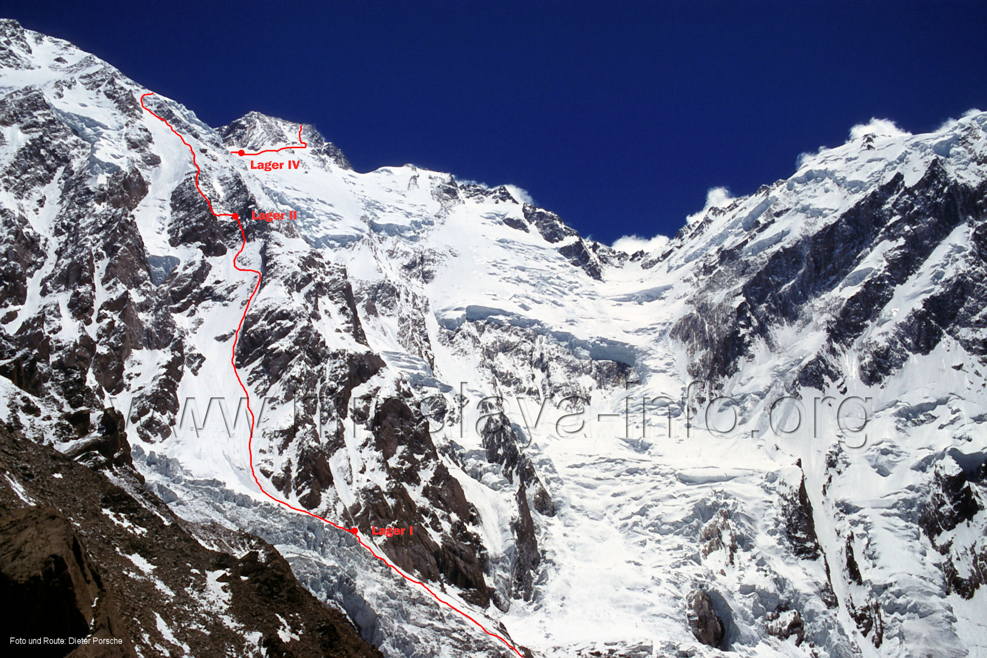 durch diese Diamir-Flanke. Die Hauptroute verläuft zunächst durch das