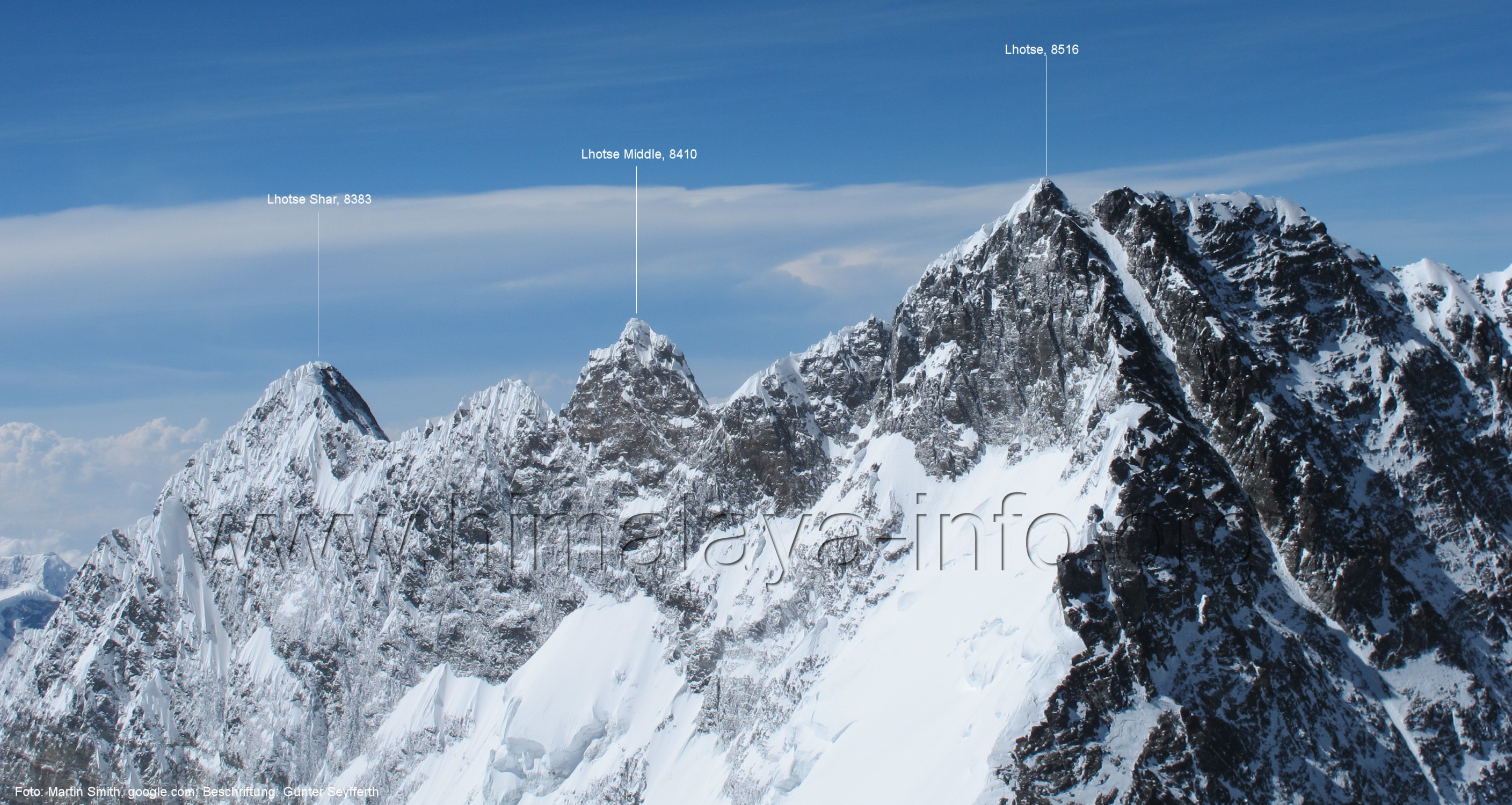 m) ab. Im südlichen Kamm ist der Nuptse der Endpunkt, von dessen