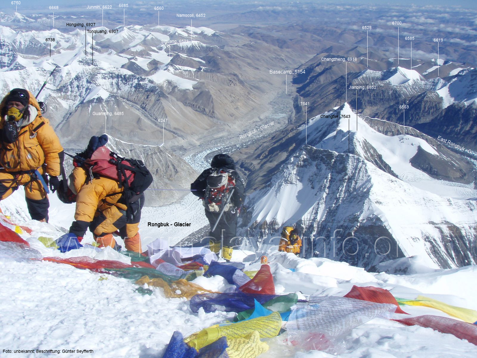m) und Changzheng (6916 m) nur schwach ab. Unten links ist die