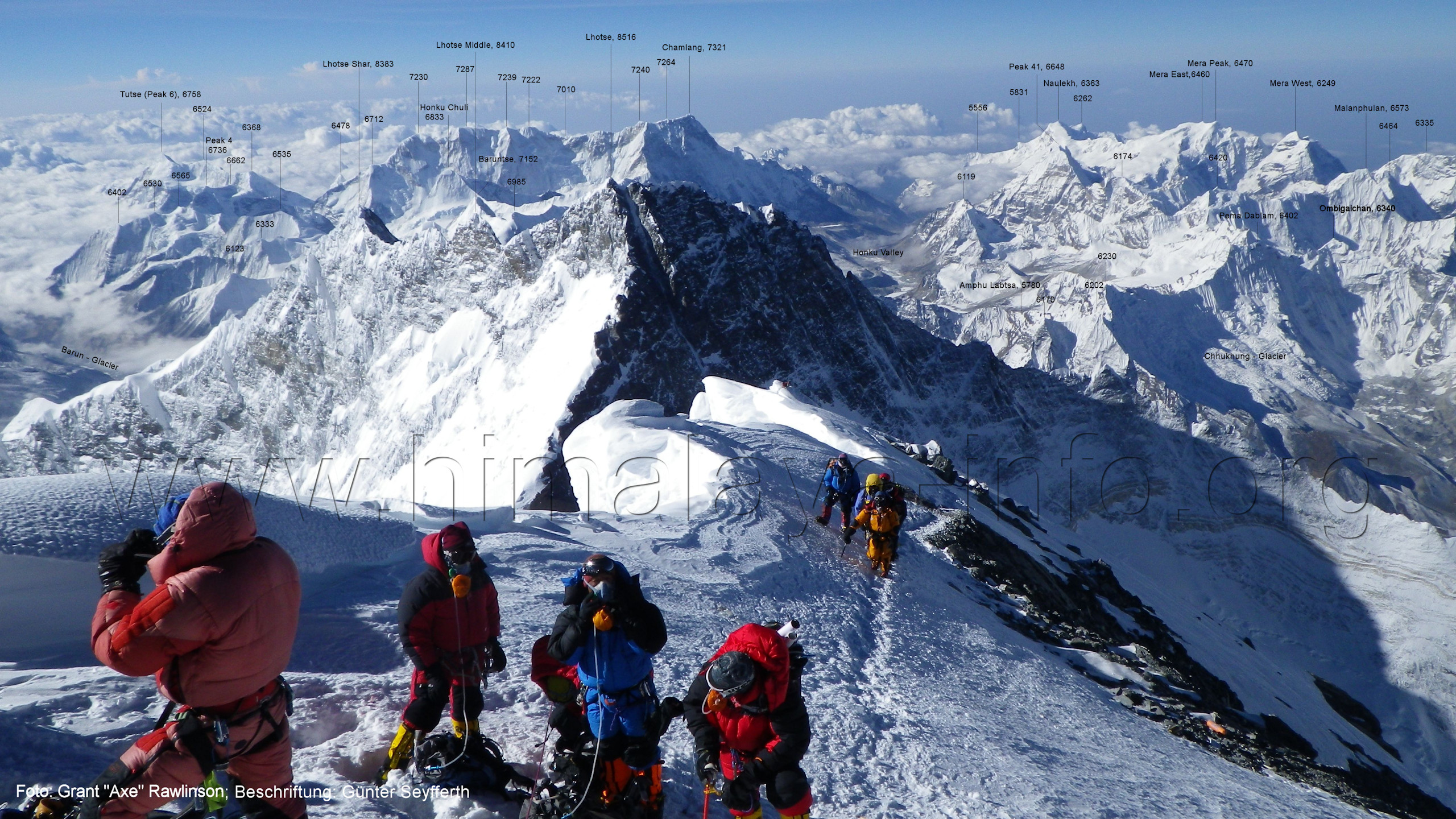 Bilder vorangestellt, die den Mount Everest aus unterschiedlichen Richtungen