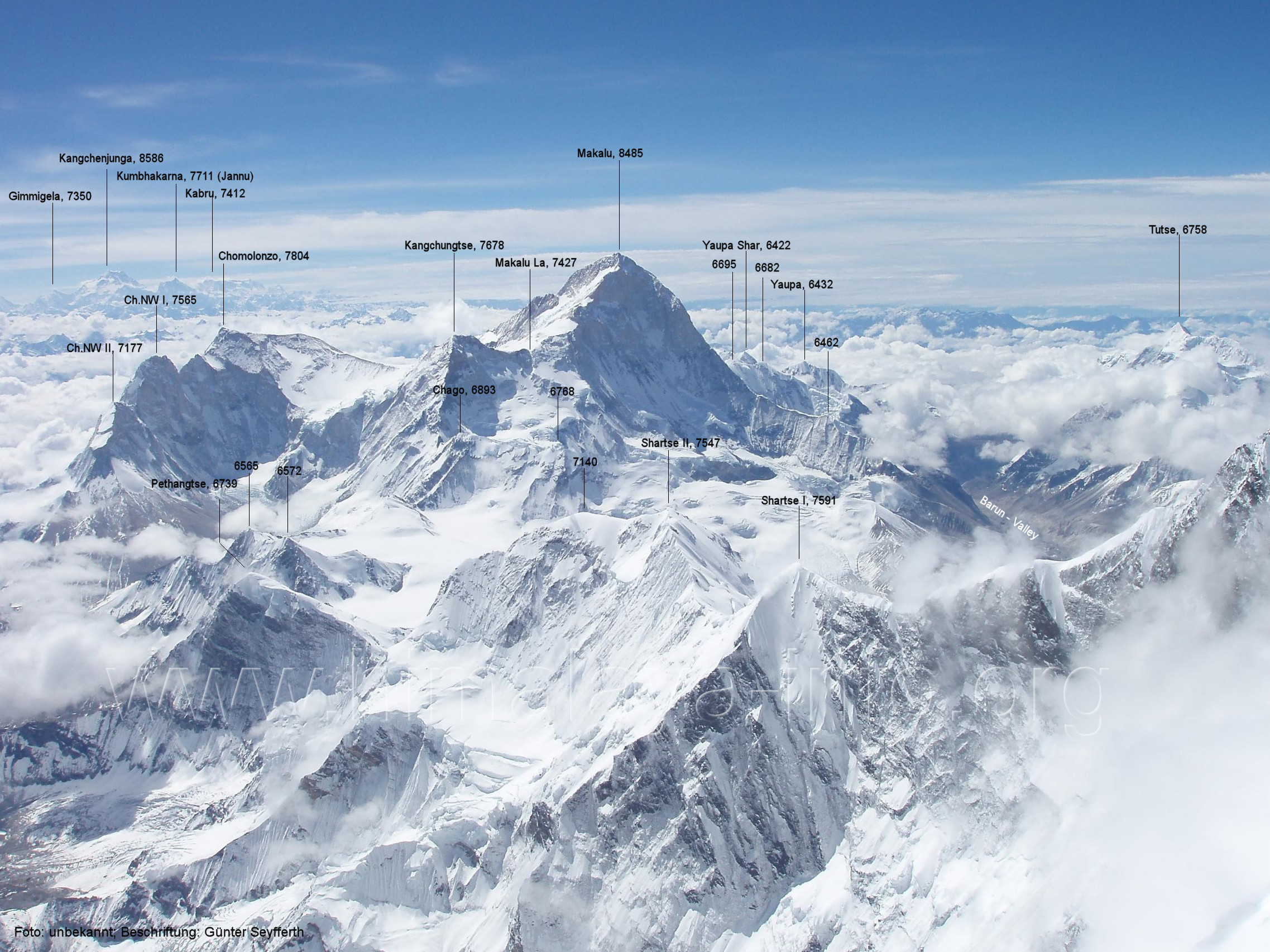 erreicht. Erstmals taucht aus dieser Höhe der 8403 m (8423 m ?) hohe Nordostgipfel des