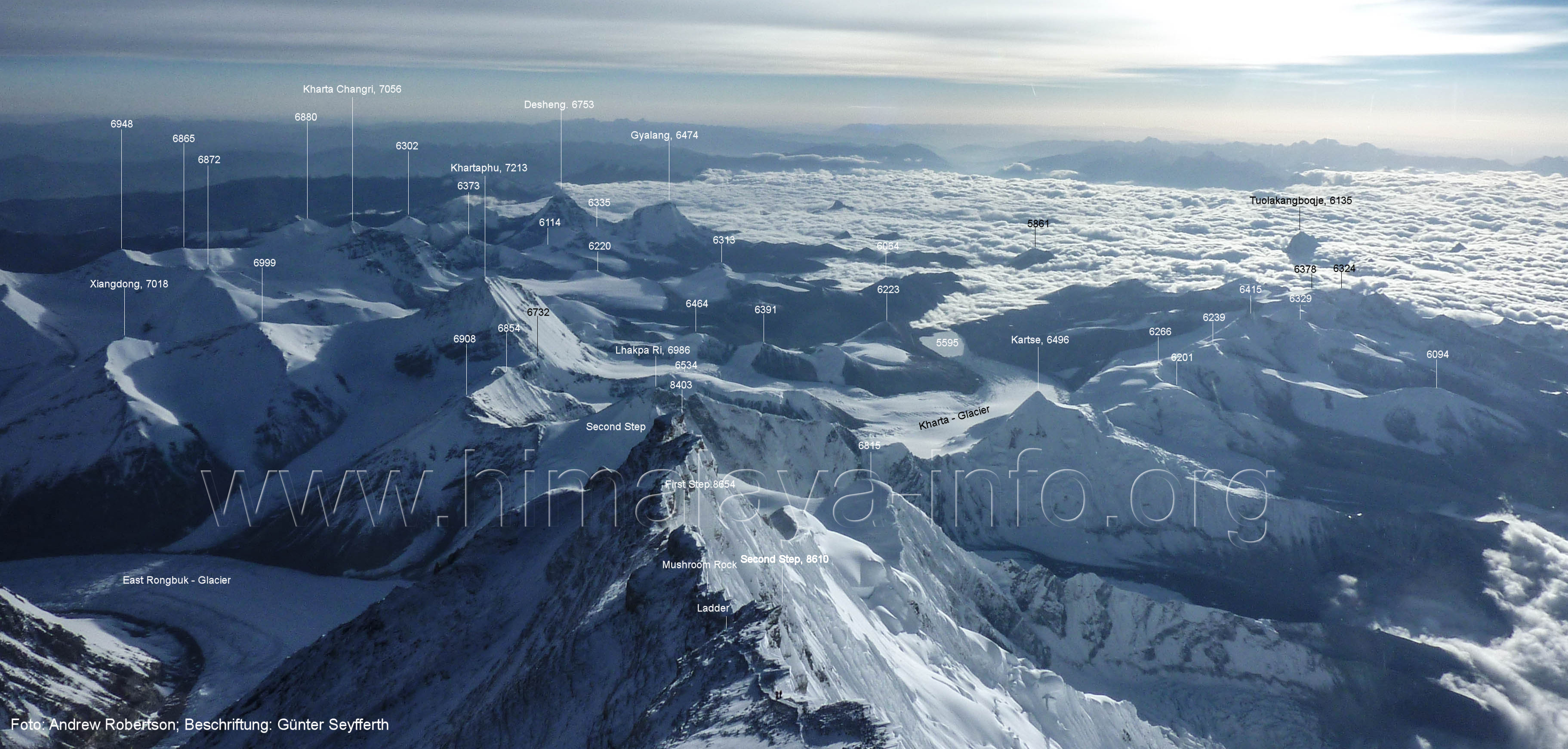 (1) Blick vom Gipfel des Pumori (7145 m) nach Osten mit Changtse