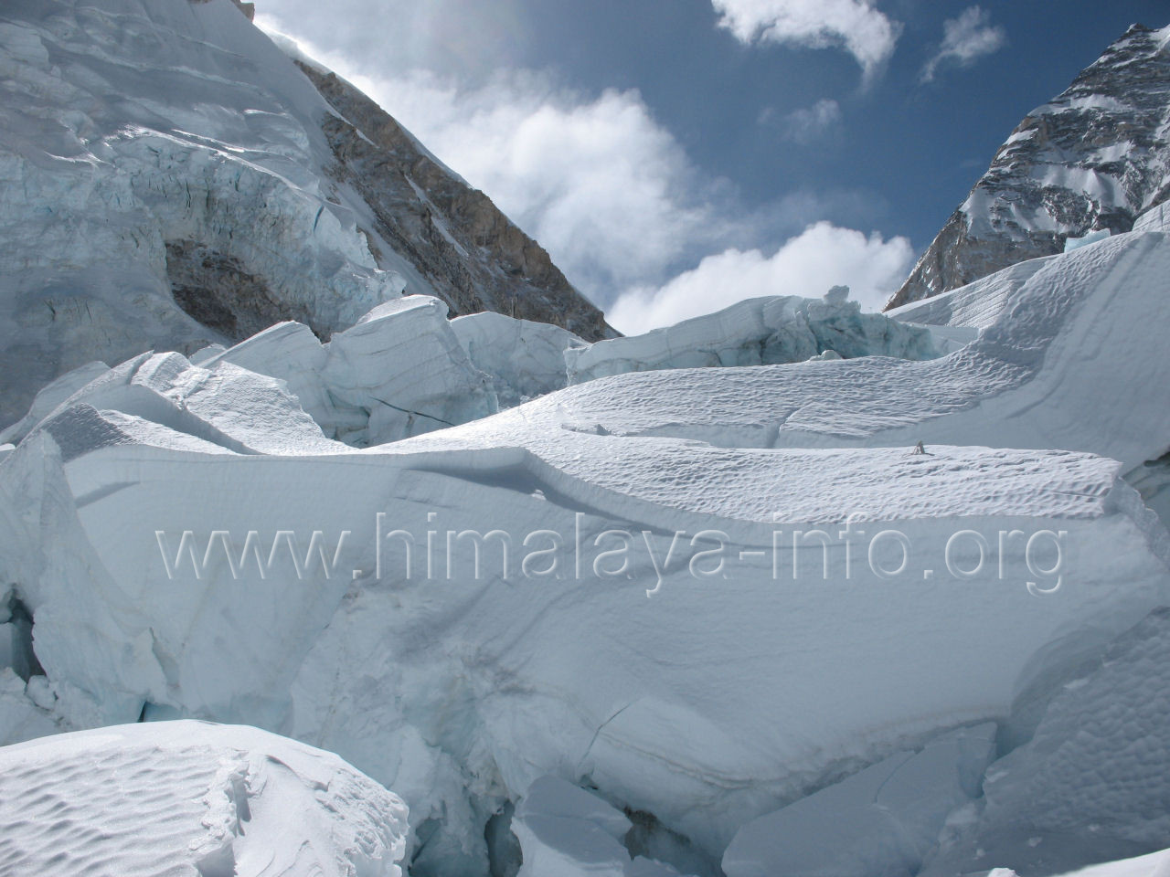 nepalesischer Seite. Das Eis des Western CWM bewegt sich in Richtung