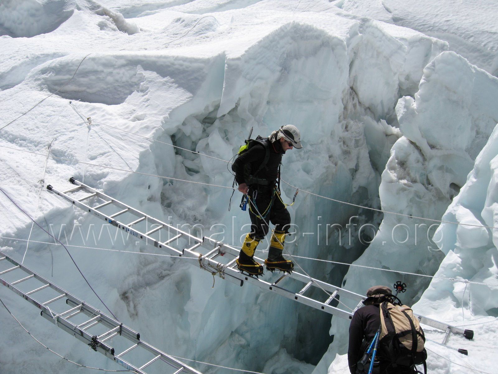Dieser Eisbruch ist der gefährlichste Abschnitt der Besteigungsroute