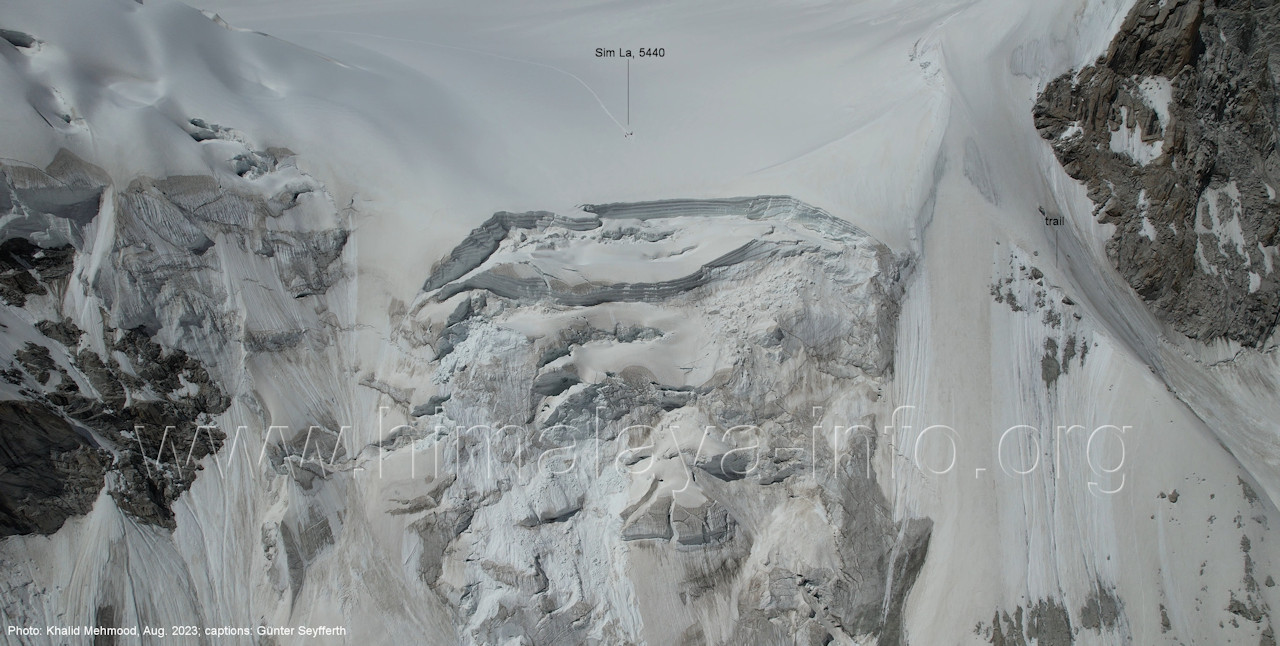 der Rippe rechts des Gletscherbruchs. Foto: Khalid Mehmood, 20.08.2023; Beschriftung: Günter Seyfferth Westlich des Sim La beginn der Snow Lake.