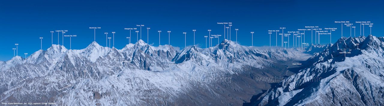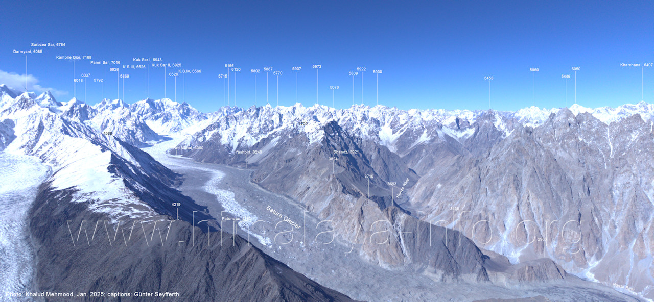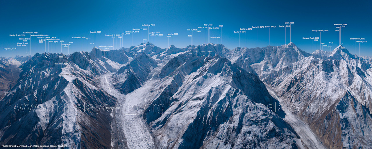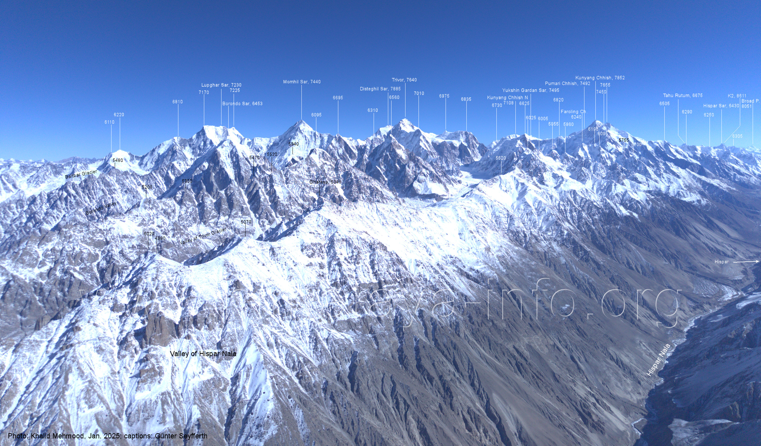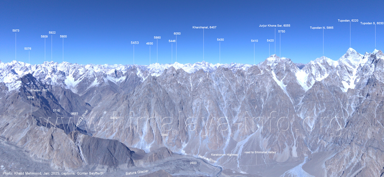 Die Gipfelkette entlang des Südrandes des Hispar-Gletschers