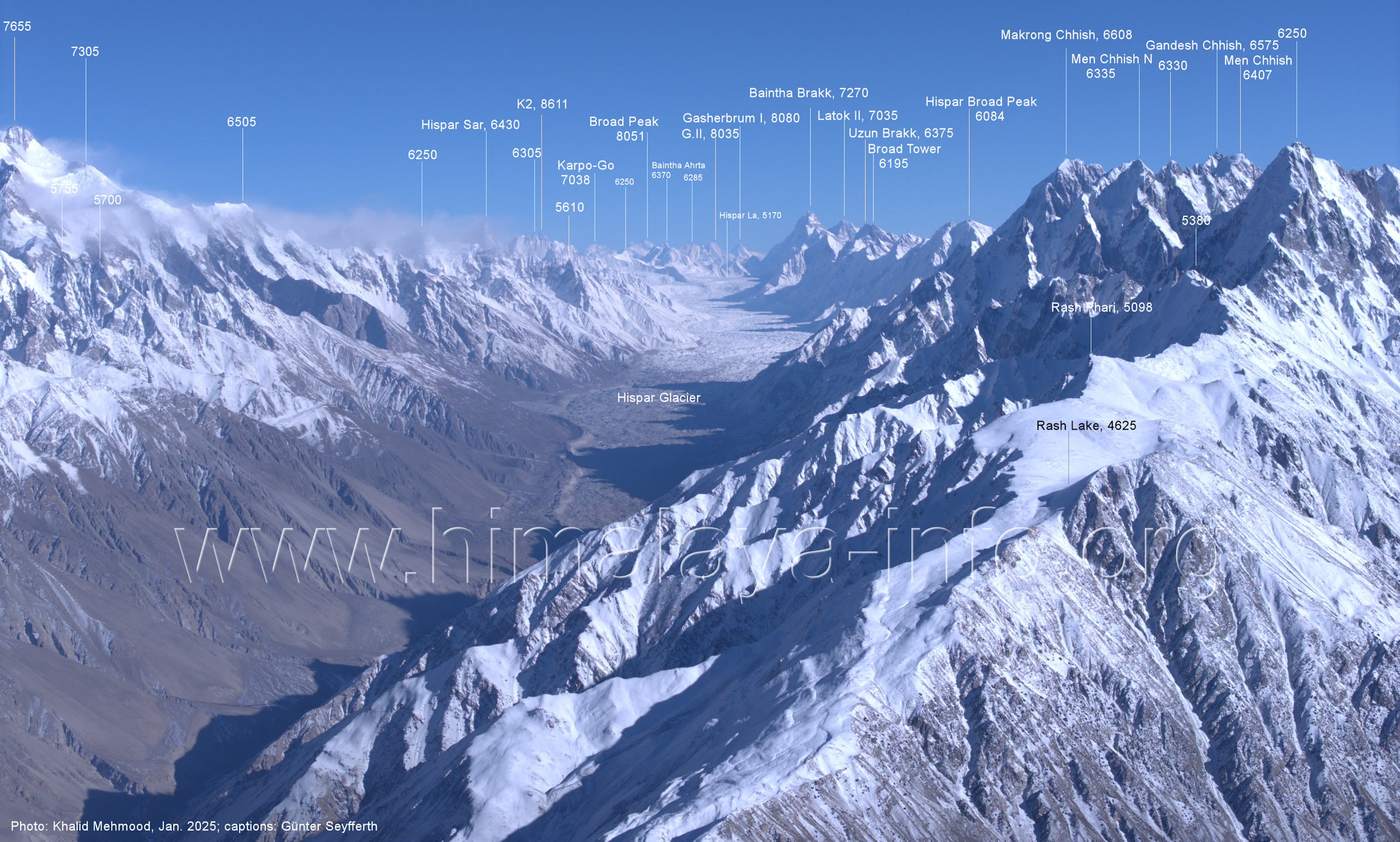 Bildrand ist auch der untere Bereich des Hispar-Gletschers zu sehen.