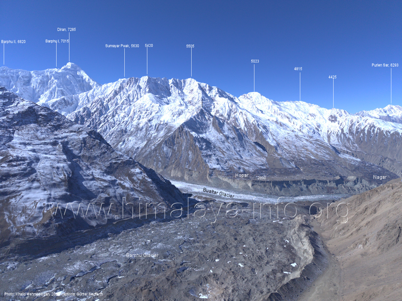 mit den Gipfeln des Hispar Muztagh, dem Tal des