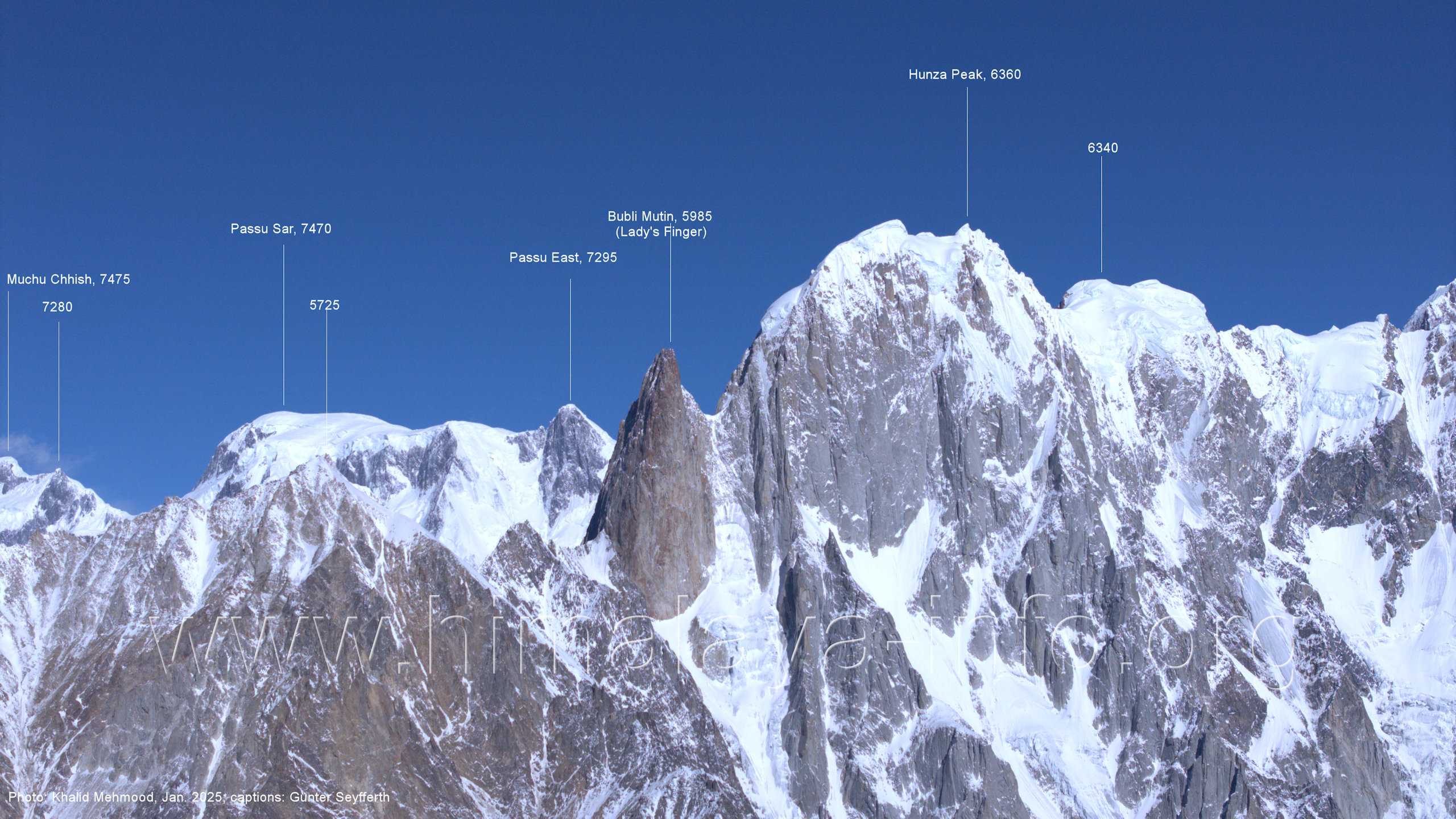 den hohen Gipfeln Ultar (7345 m), Shispare (7611 m), Passu East (7295 m),