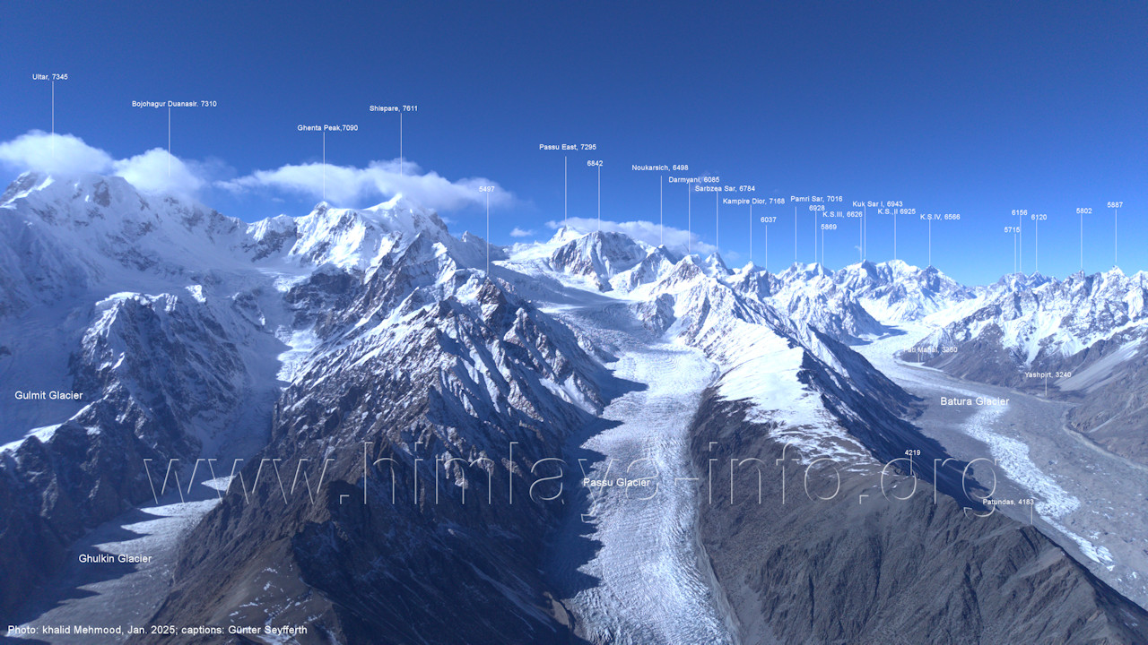 Gulmit-Gletscher, Ghulkin-Gletscher, Passu-Gletscher und Batura-Gletscher