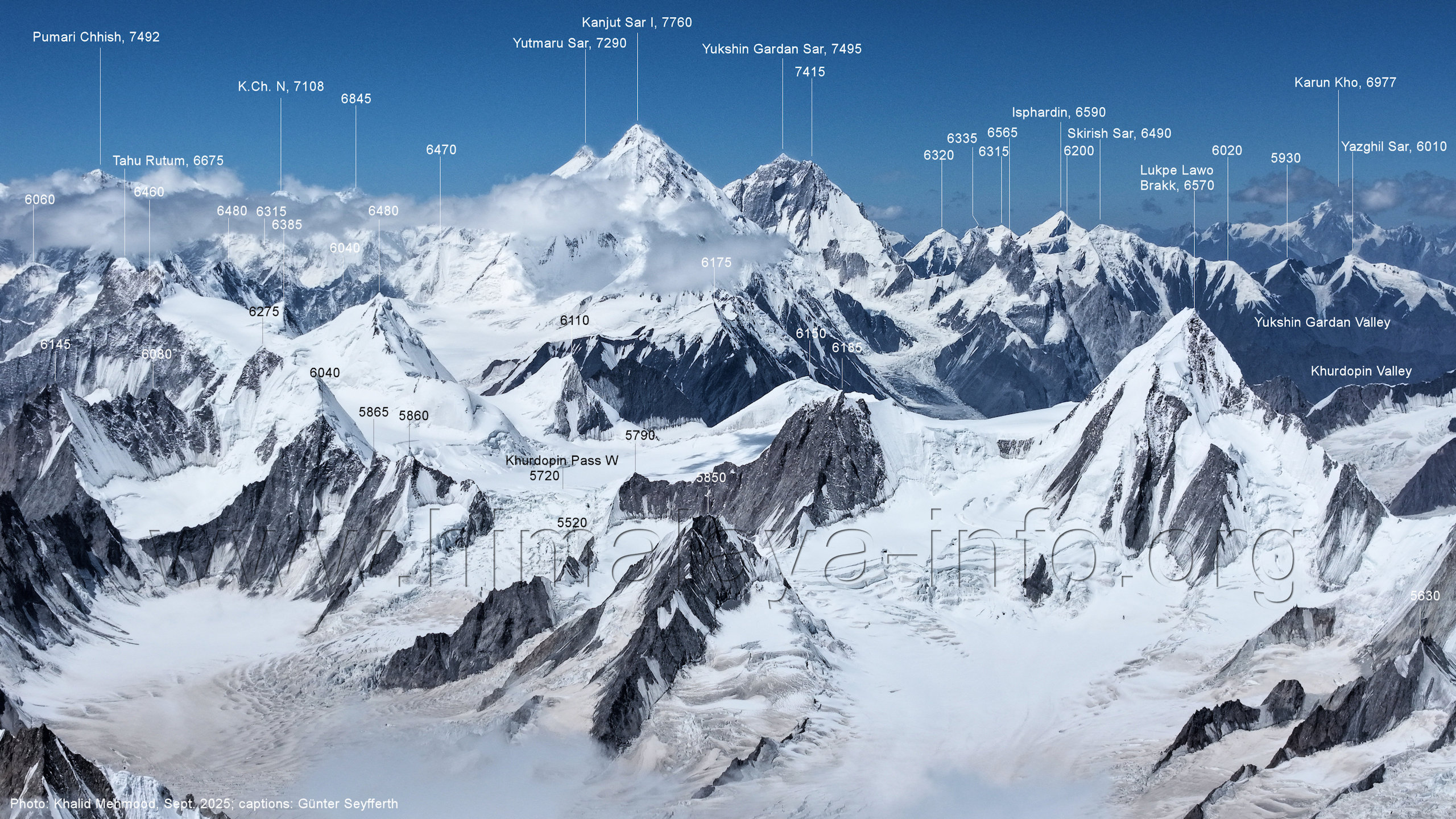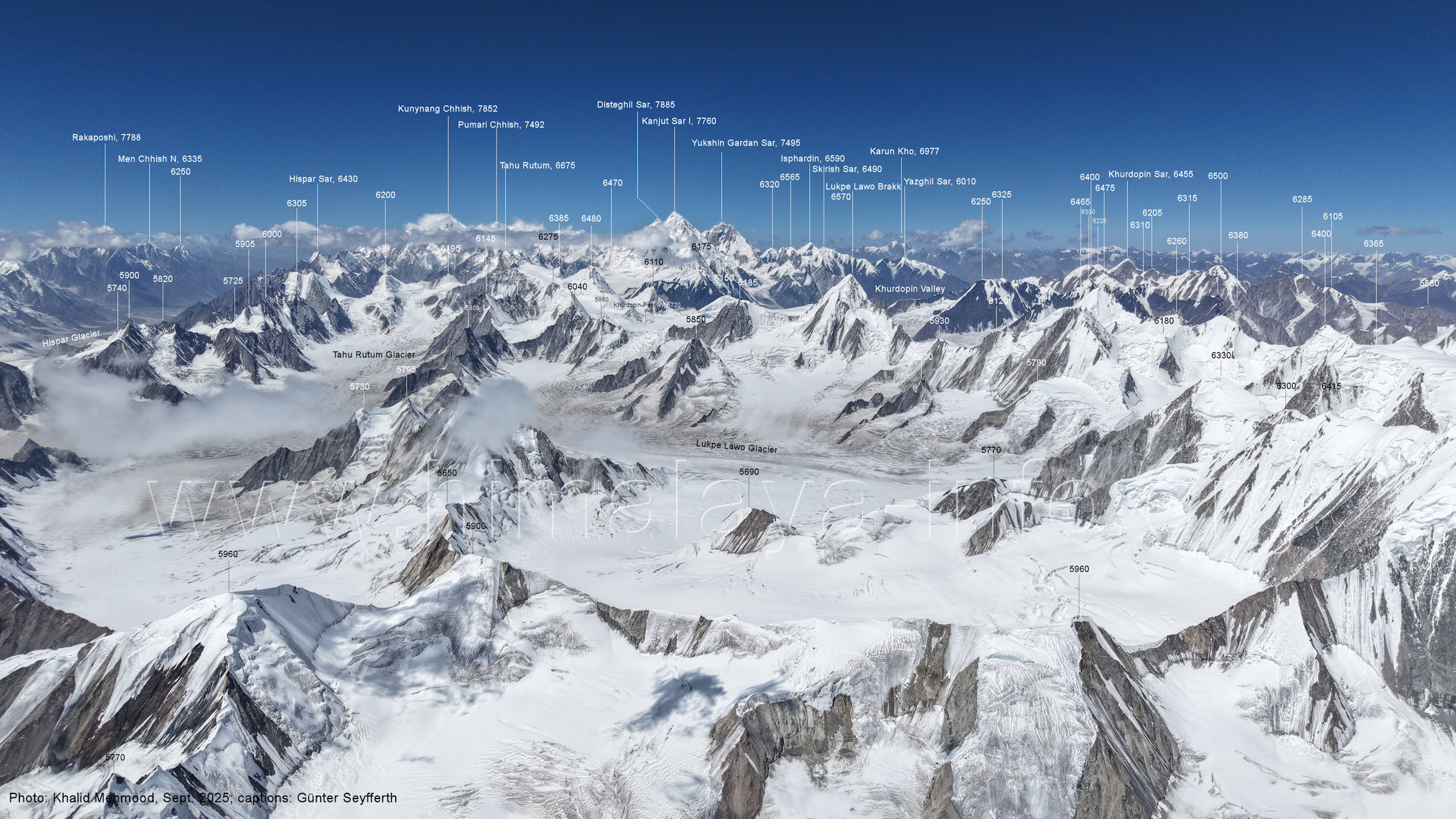 Sar I (7760 m), Tahu Rutum (6675 m), Khurdopin Sar (6455 m), Karun Kho