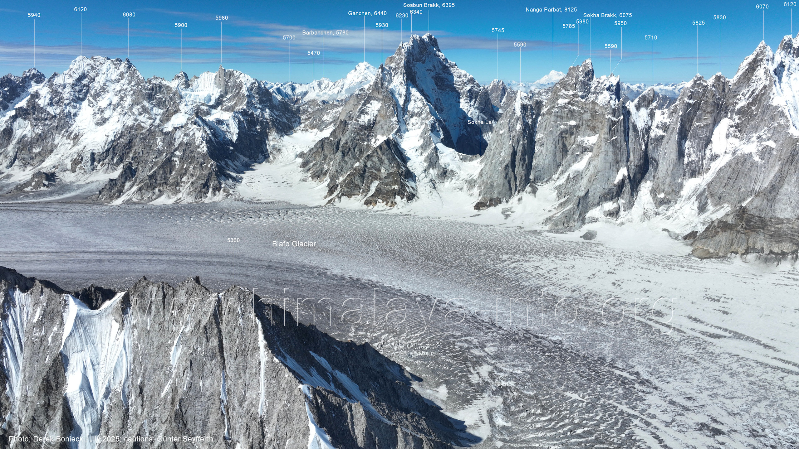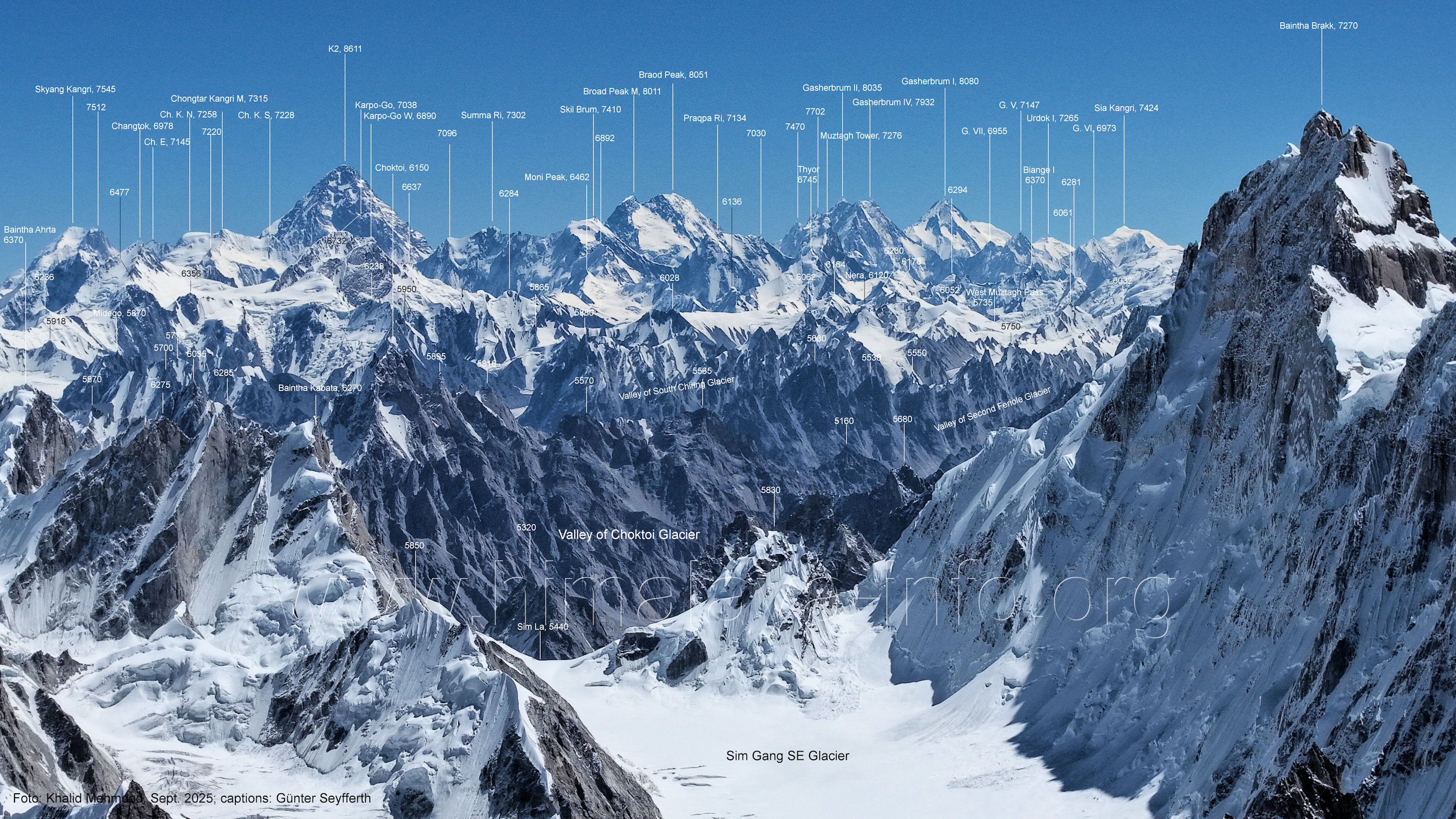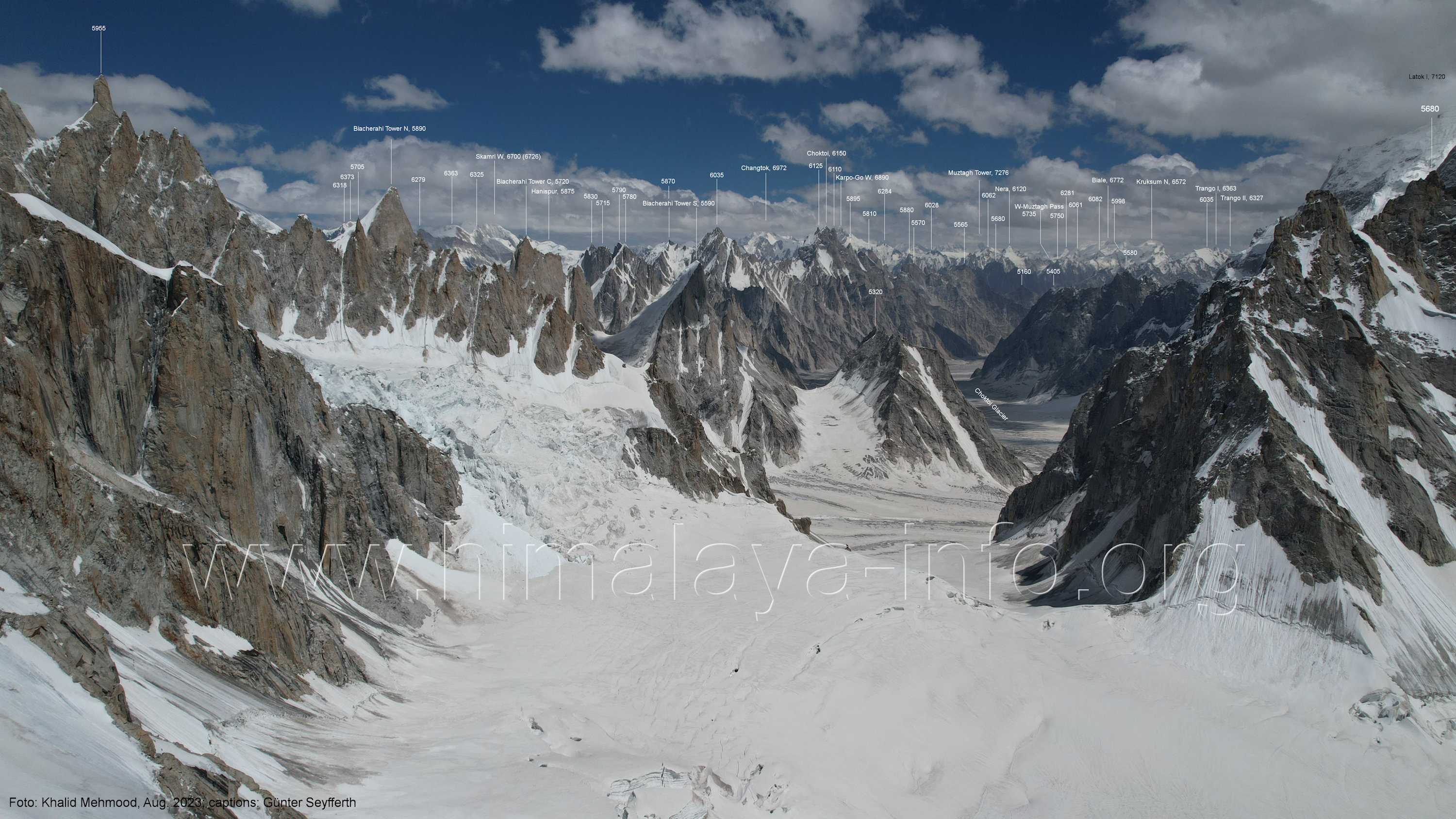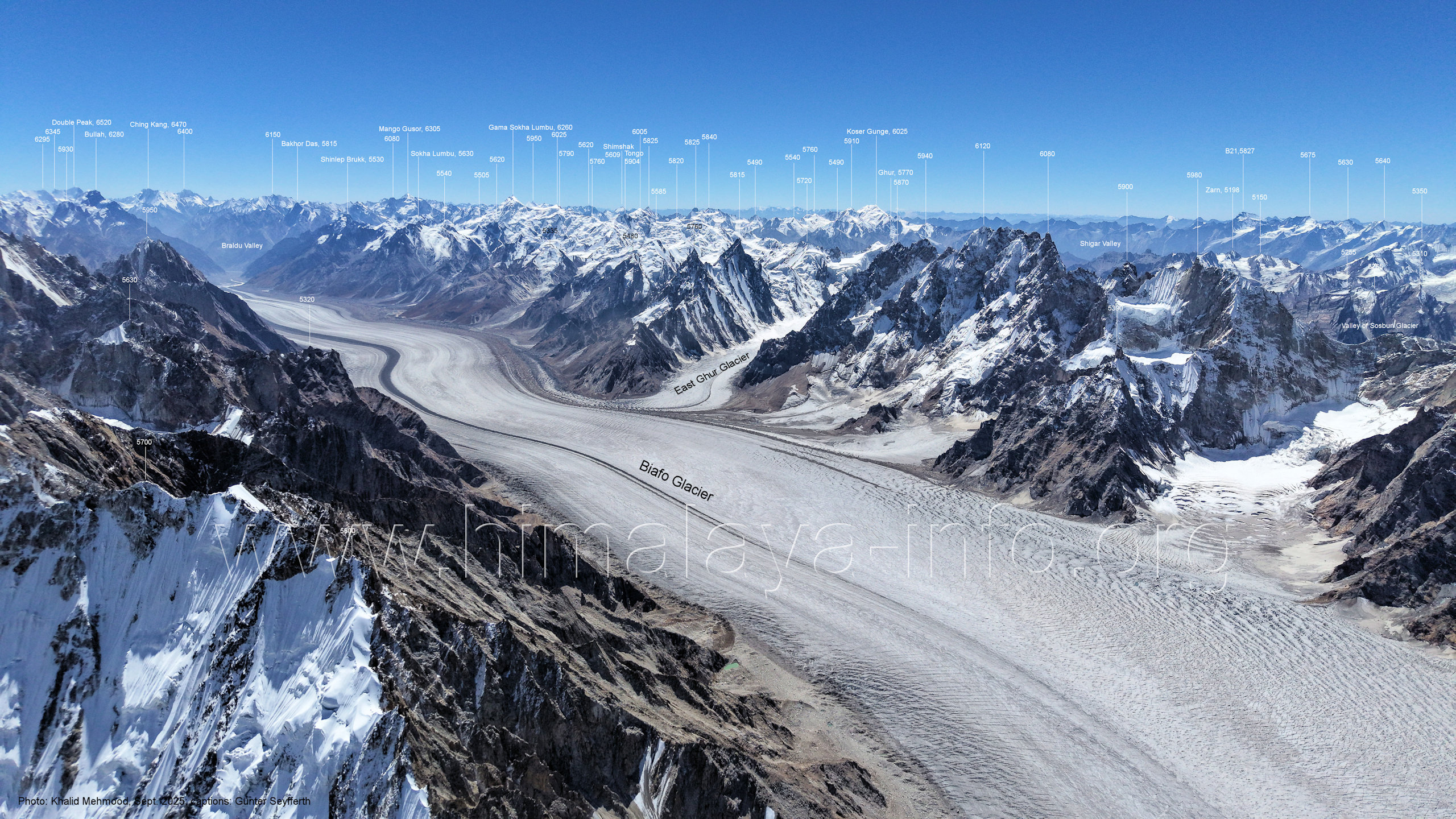 (5440 m) Für alle Bilder dieses Unterabschnitts gilt: Foto: Khalid Mehmood, Beschriftung: Günter Seyfferth (B3-1) Blick nach Südosten in das Tal des Choktoi-Gletschers Dies war der Startplatz der Drohne für