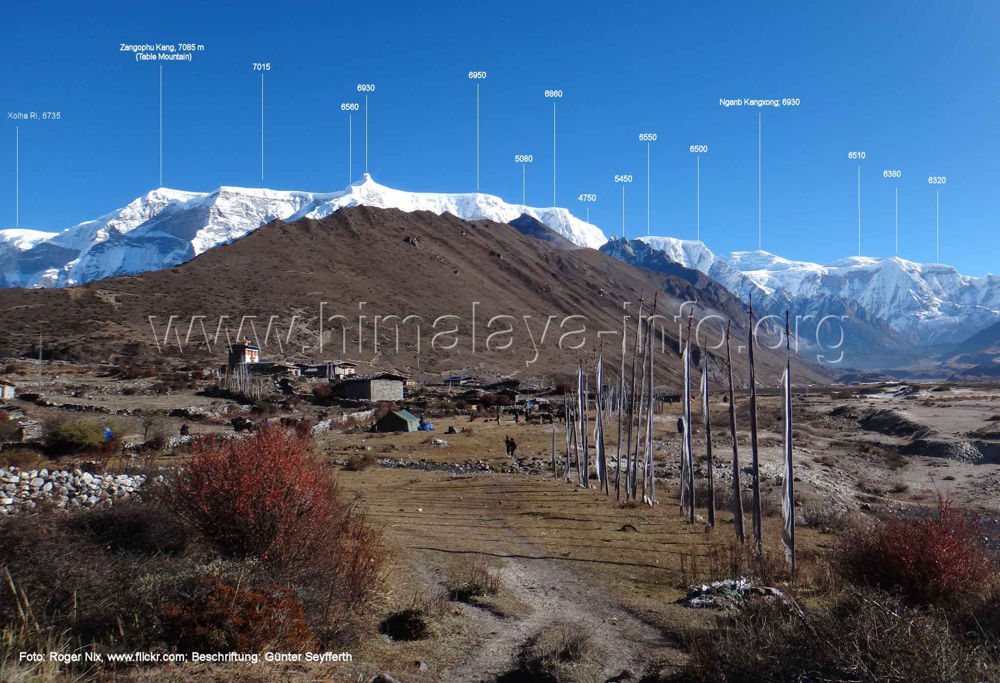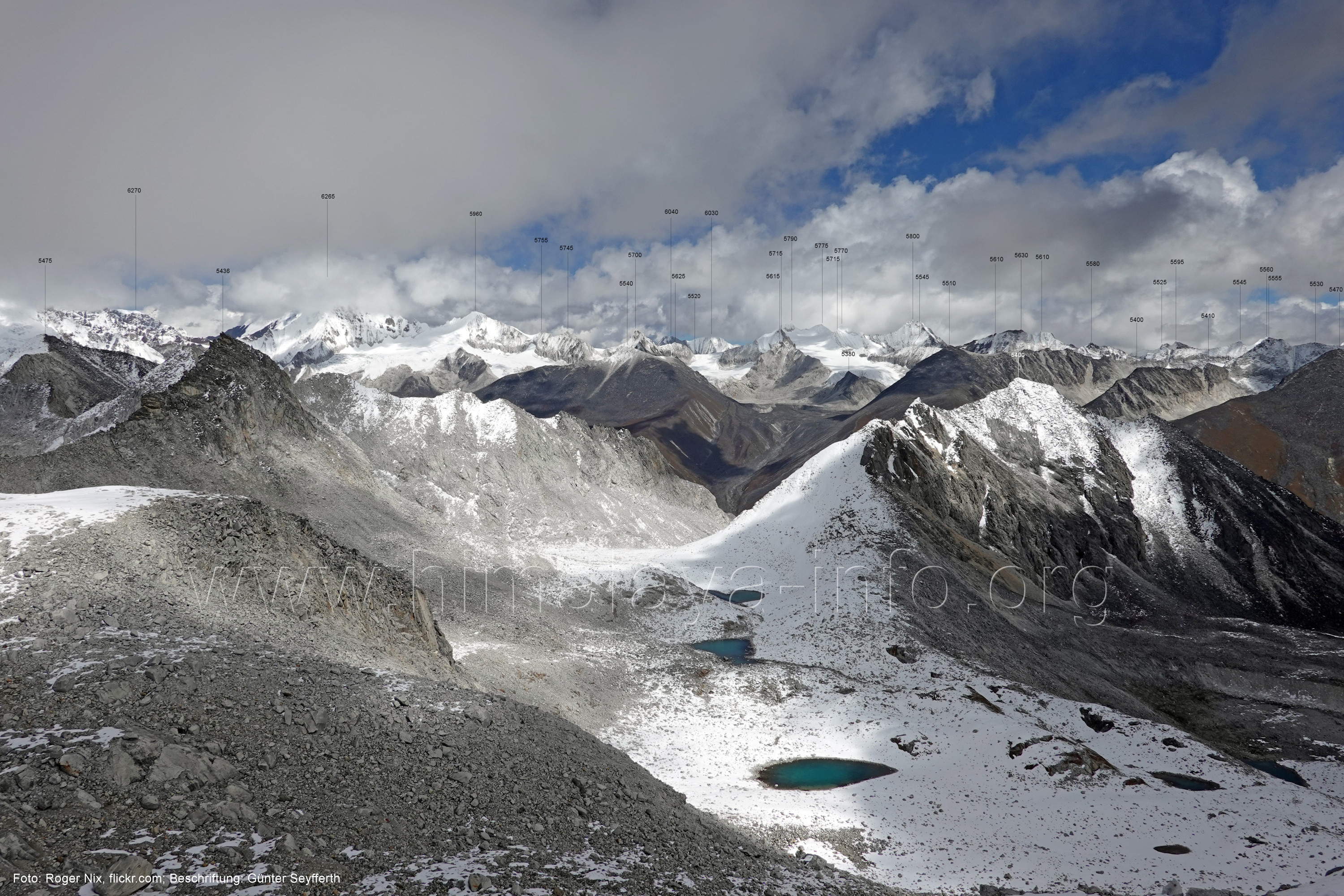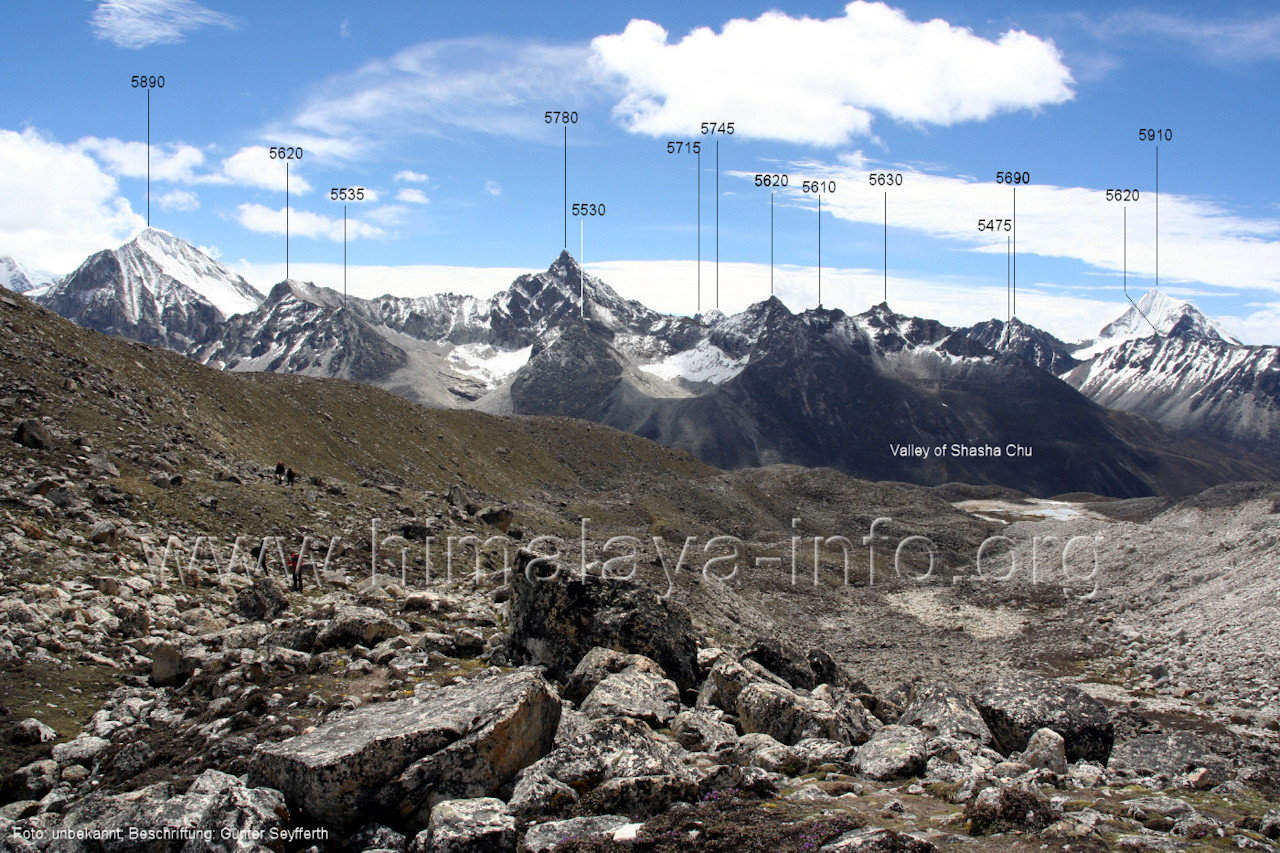 (6705 m), Gangsha (6722 m) und Peak 6930