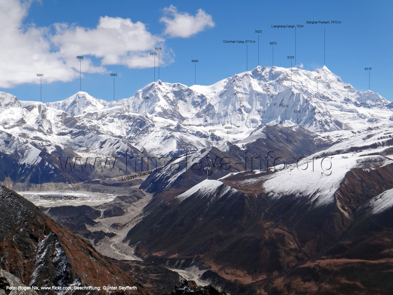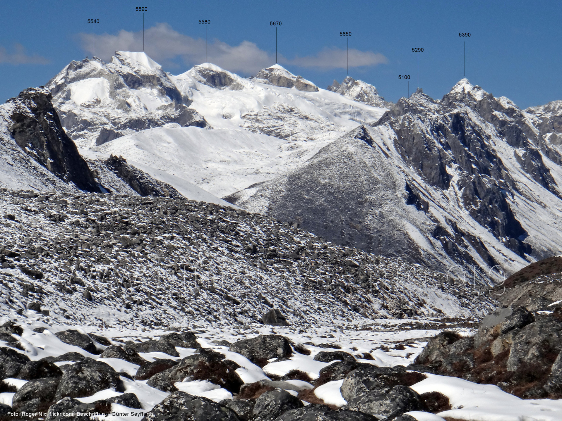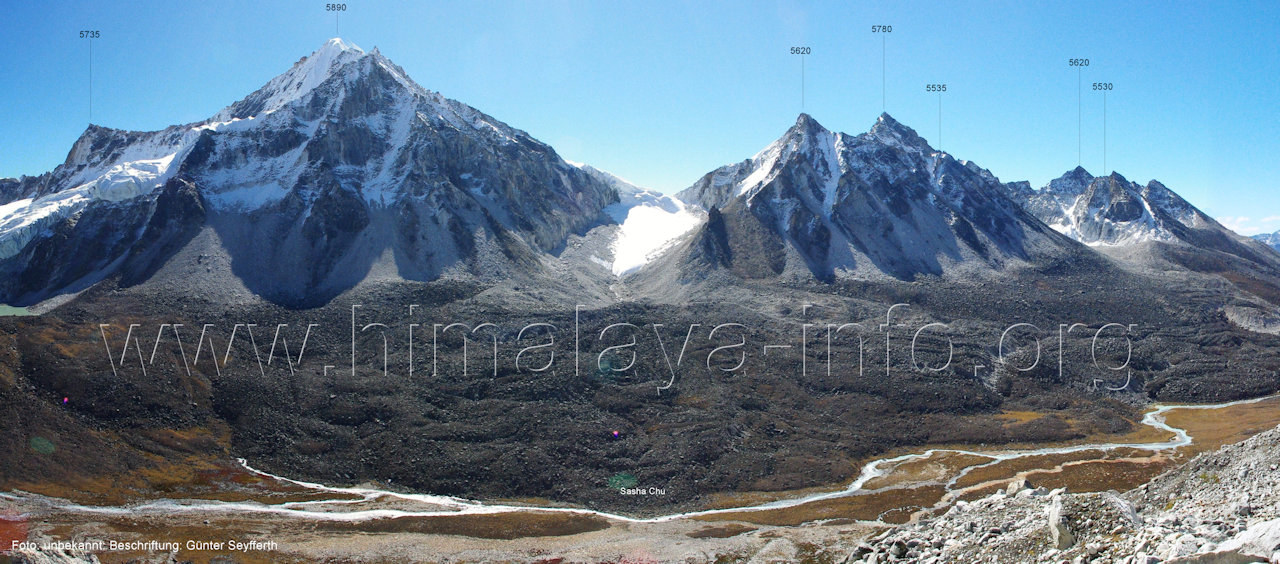 (6705 m), Gangsha (6722 m) und Peak 6930