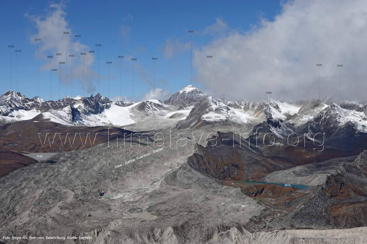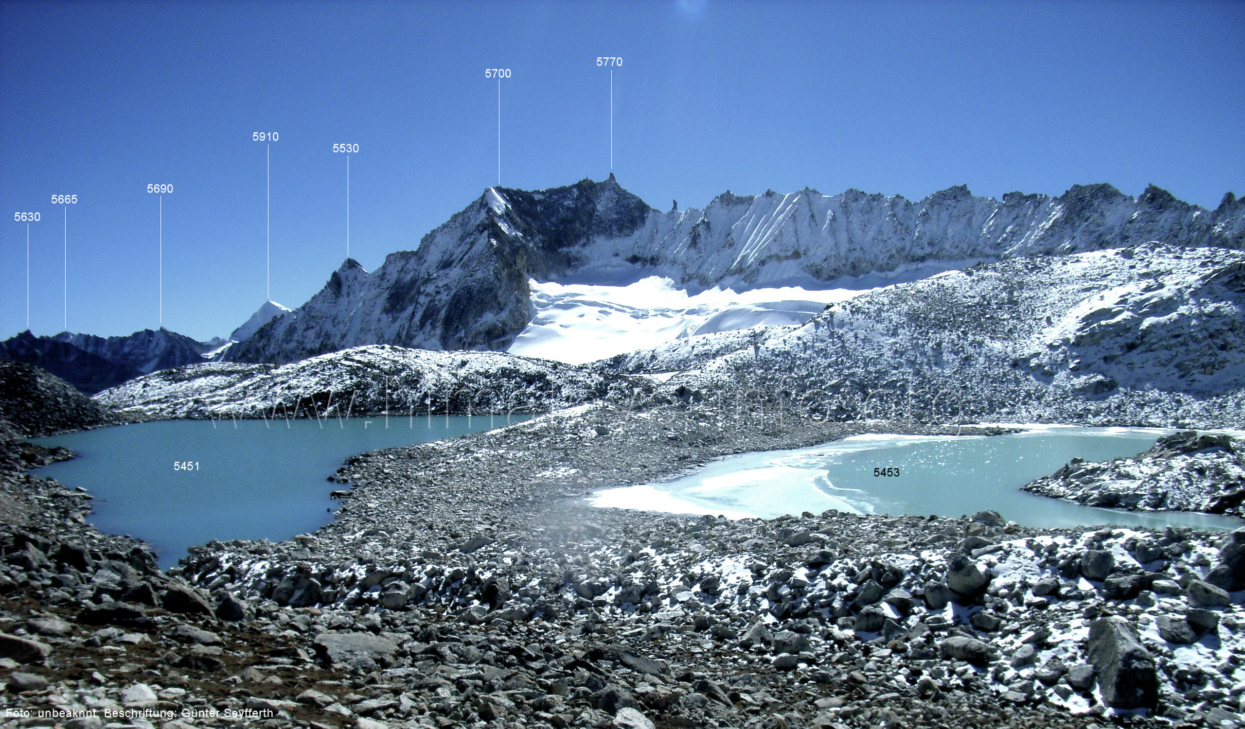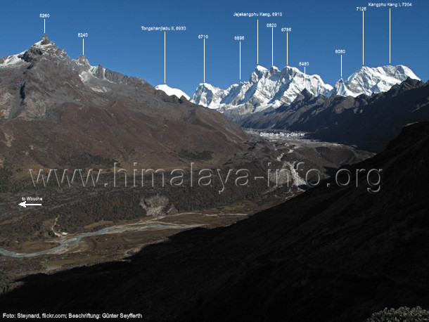 See des Shima-Gletschers. Man beachte, dass nun der Teri Kang (7130 m)