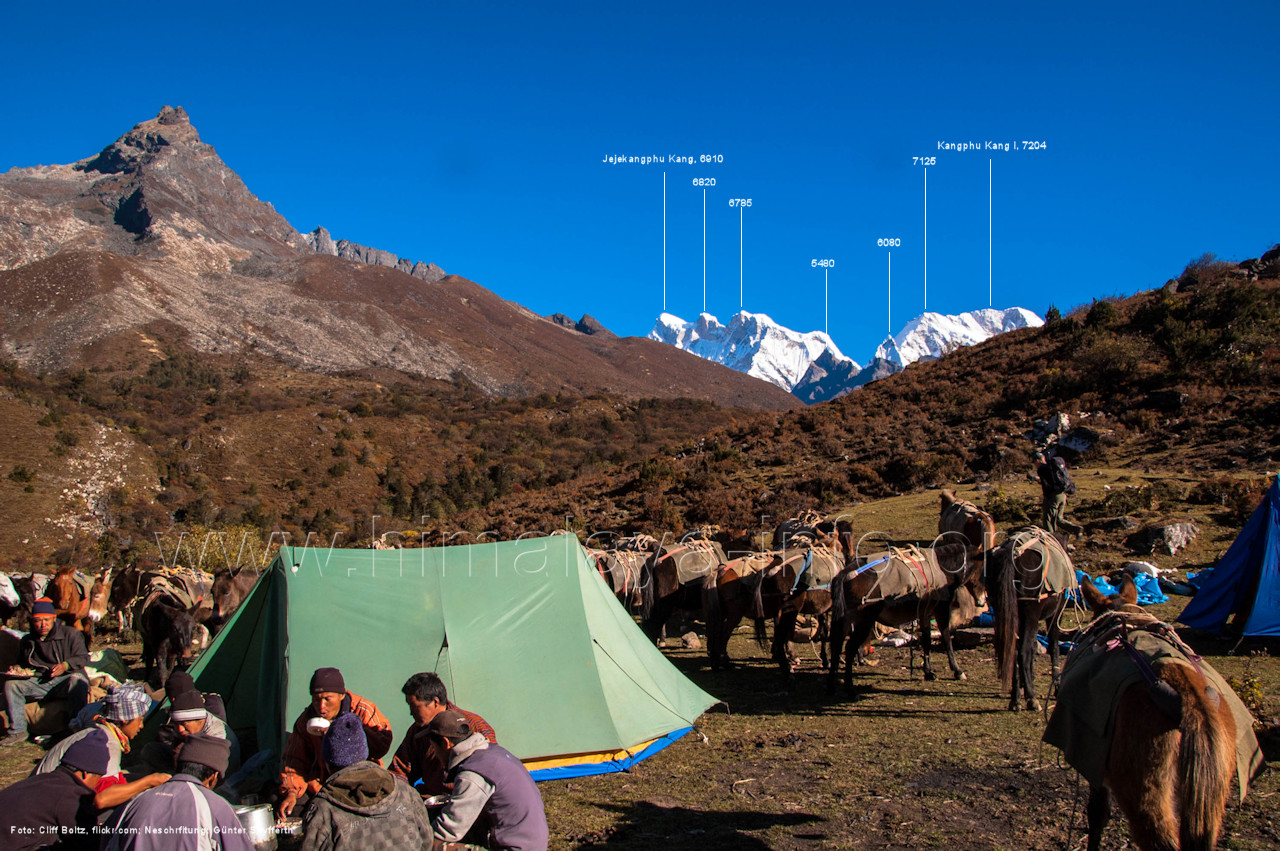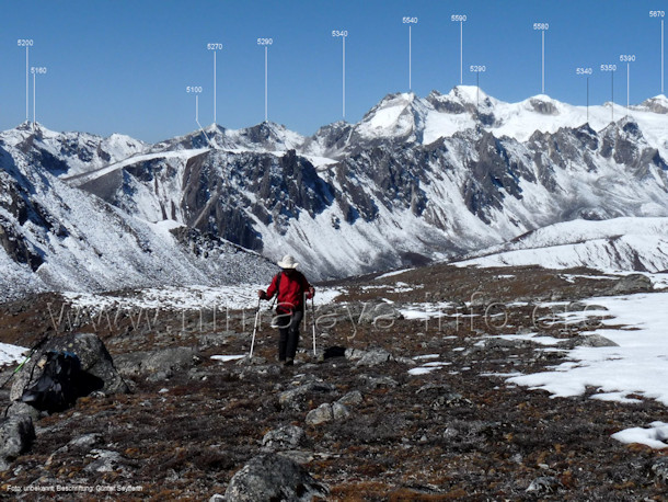 Kangphu I 15 km entfernt ist und man auf 5130 m Höhe steht. Immerhin um mehr als