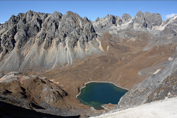 ermöglicht ein 5100 m hoher Pass die Sicht auf fast die gesamte Bergkette, die