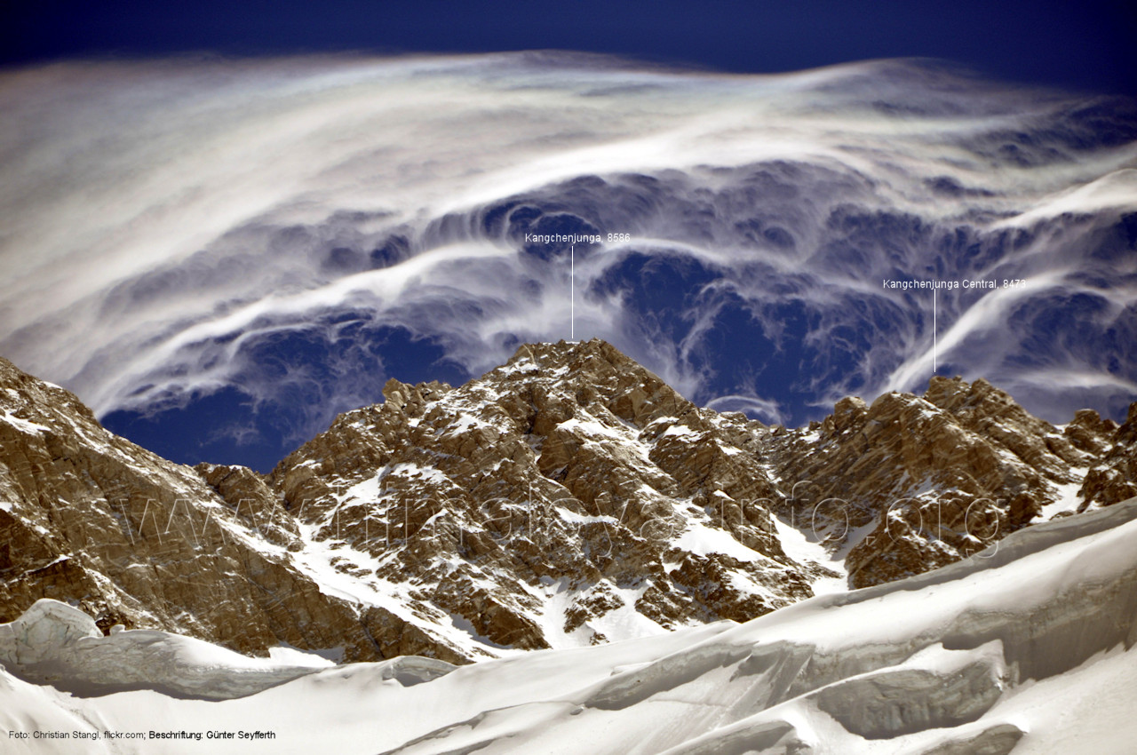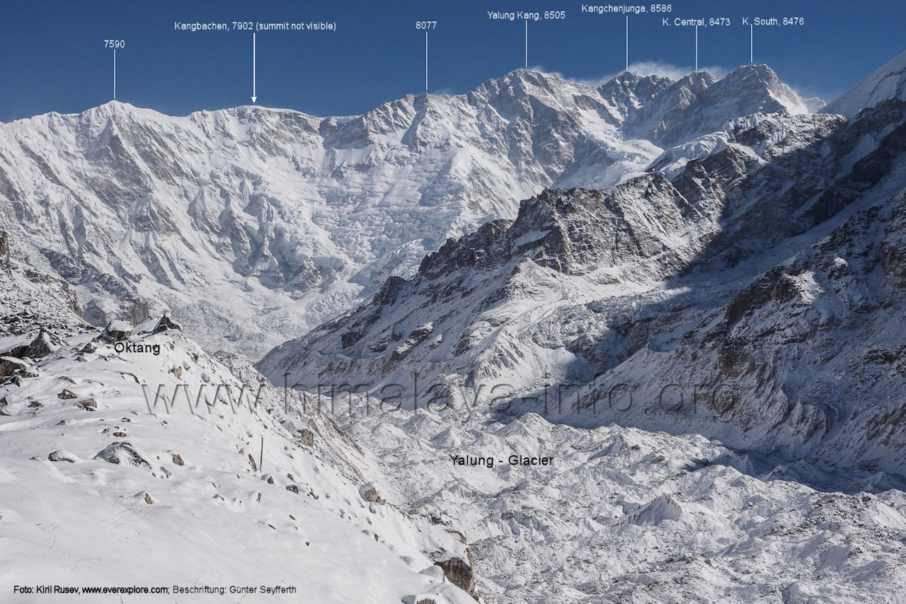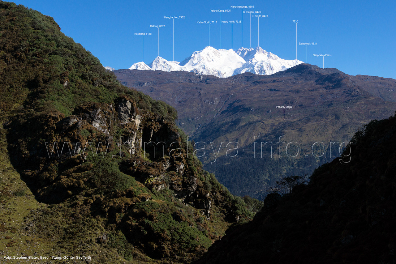(6600 m), Kabru N (7338 m), Foto: Massimo Baltreme, Sept. 2010, flick.com; ; Beschriftung: Günter Seyfferth (50) Blick von Dzongri nach Norden zum Kangchenjunga (8586 m) Foto: Bental_3000, Nov. 2010; Beschriftung: Günter Seyfferth