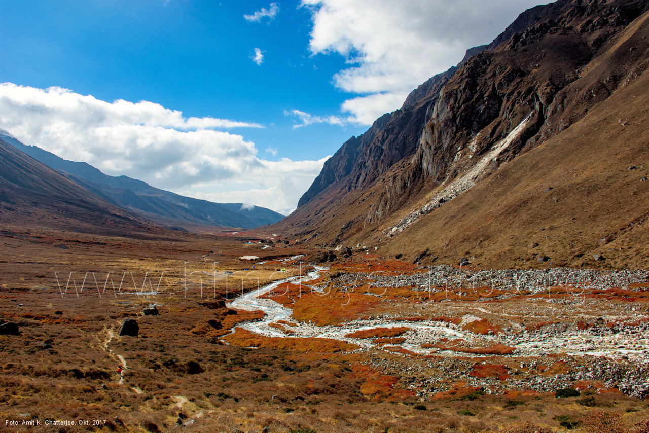 und Prek Chu, der nach rechts bis Dzongri reicht. Foto: phkkr, Nov. 2018; Beschriftung: Günter Seyfferth