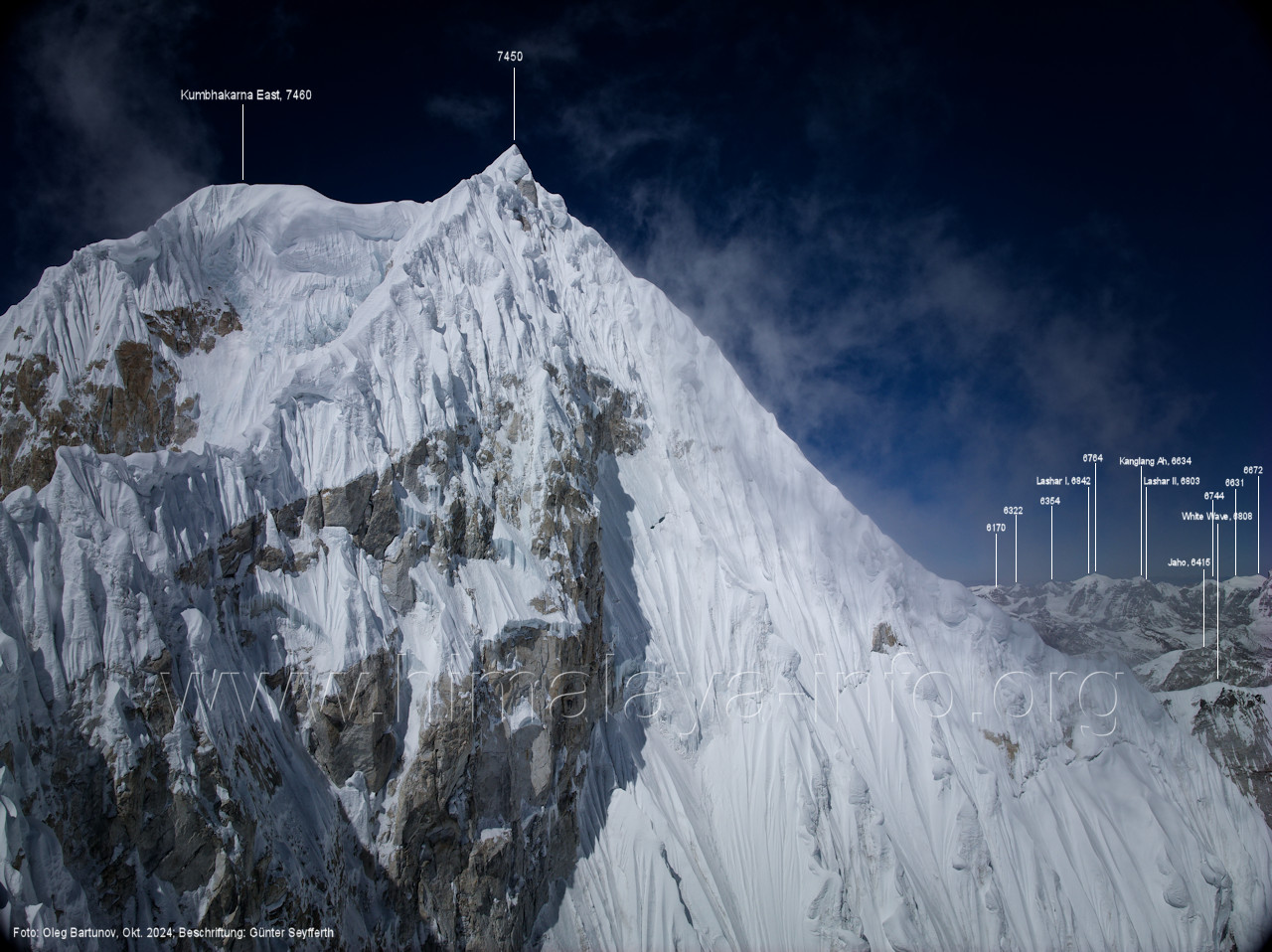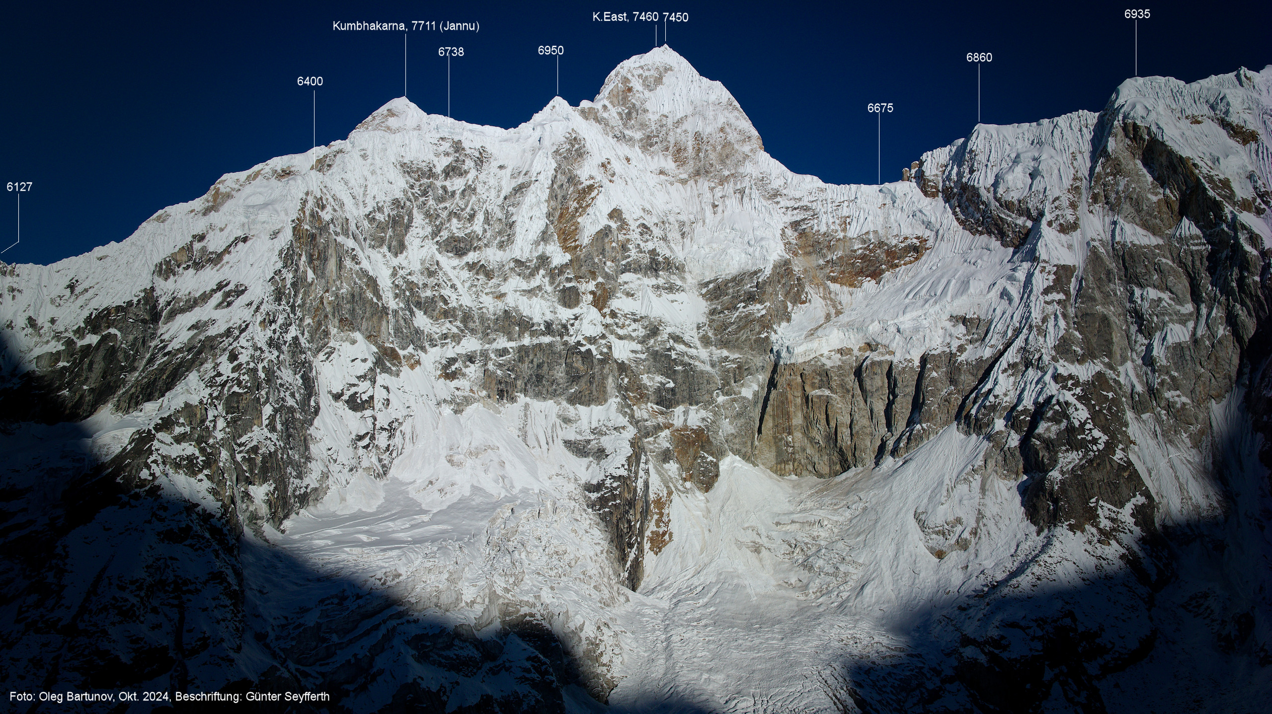 Kumbhakarna hinweg zu den Gipfeln an der Grenze zu China. Foto: Oleg Bartunov, Okt. 2024; Beschriftung: Günter Seyfferth