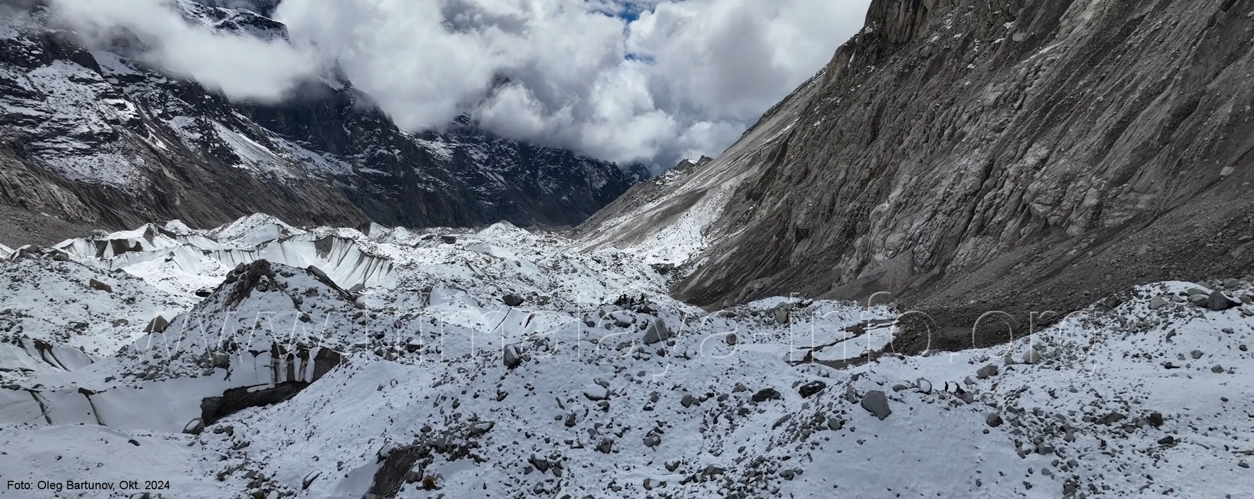 Yalung-Gletscher. Foto: Oleg Bartunov, Okt. 2024; Beschriftung: Günter Seyfferth