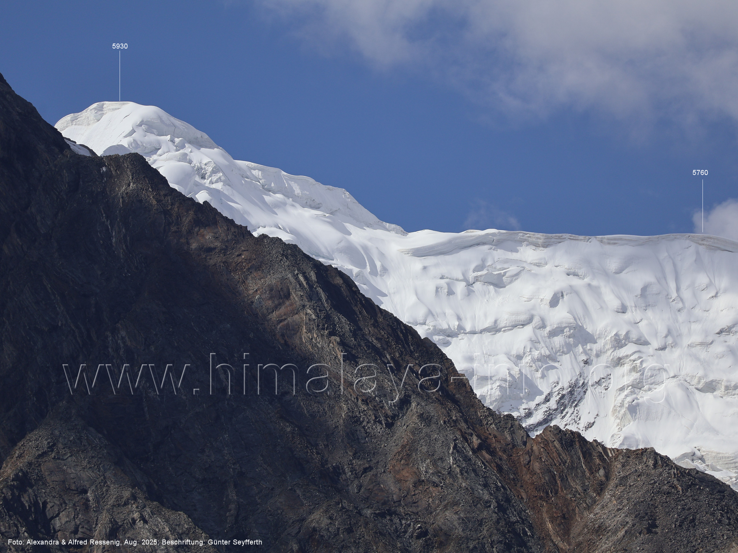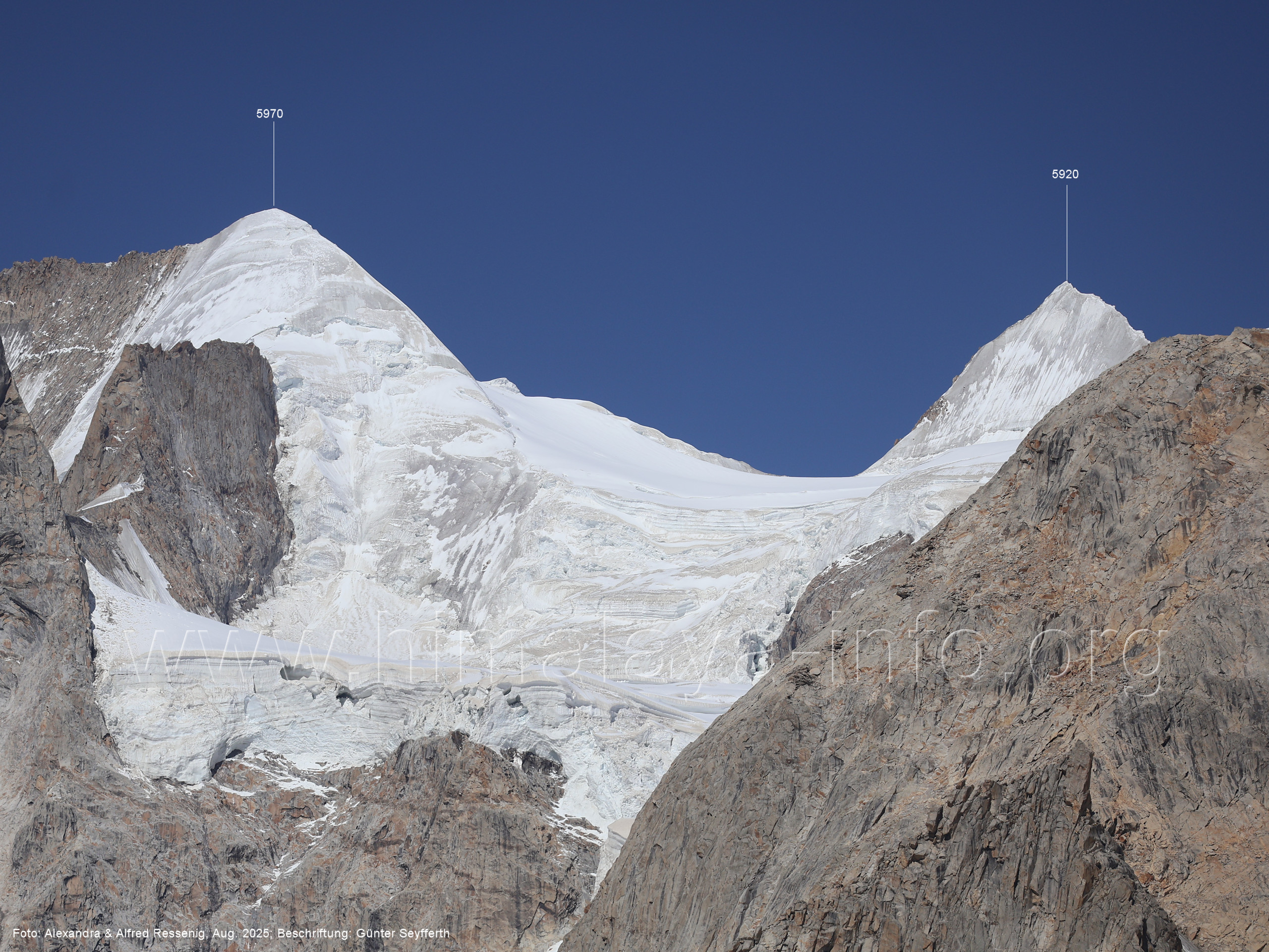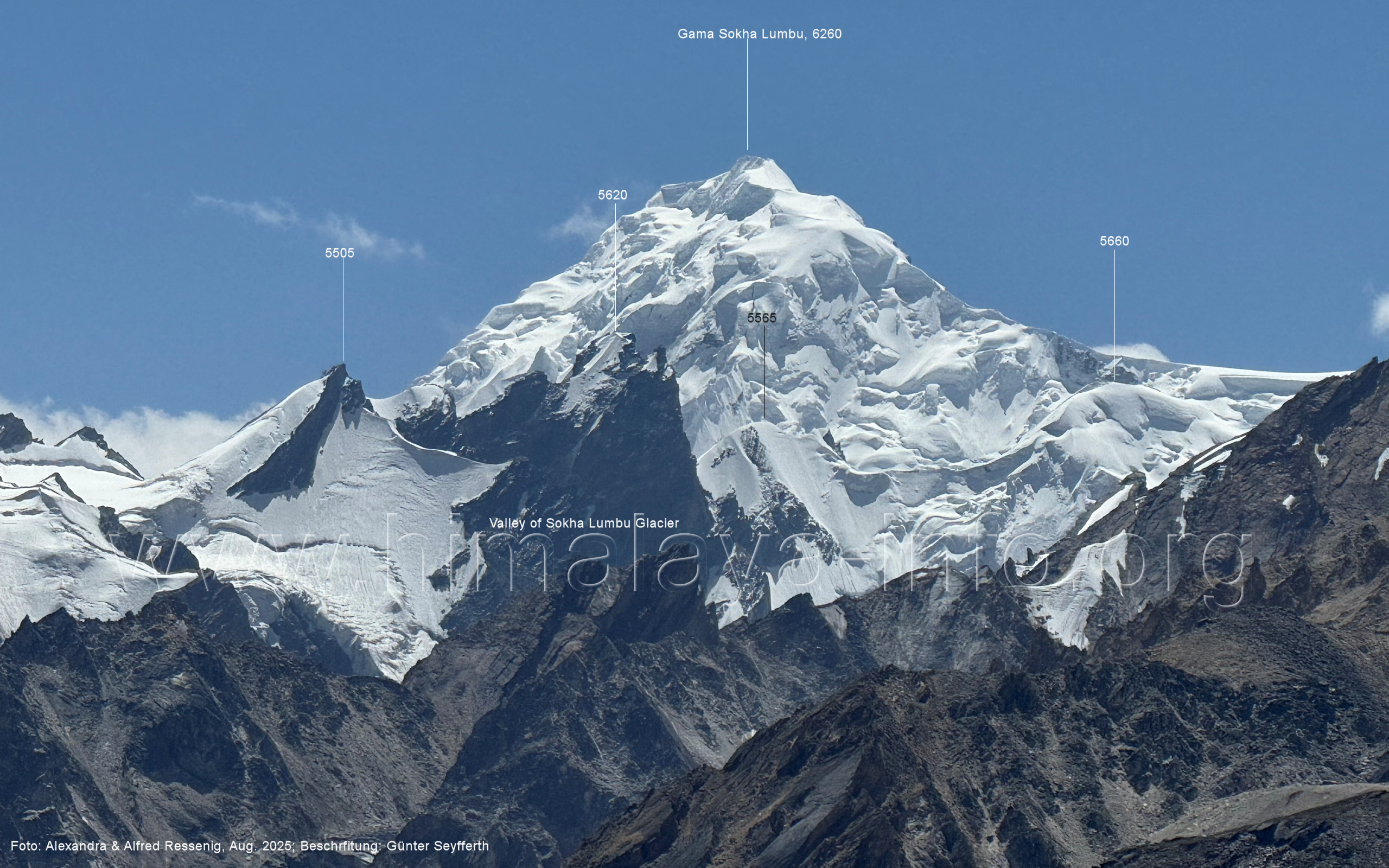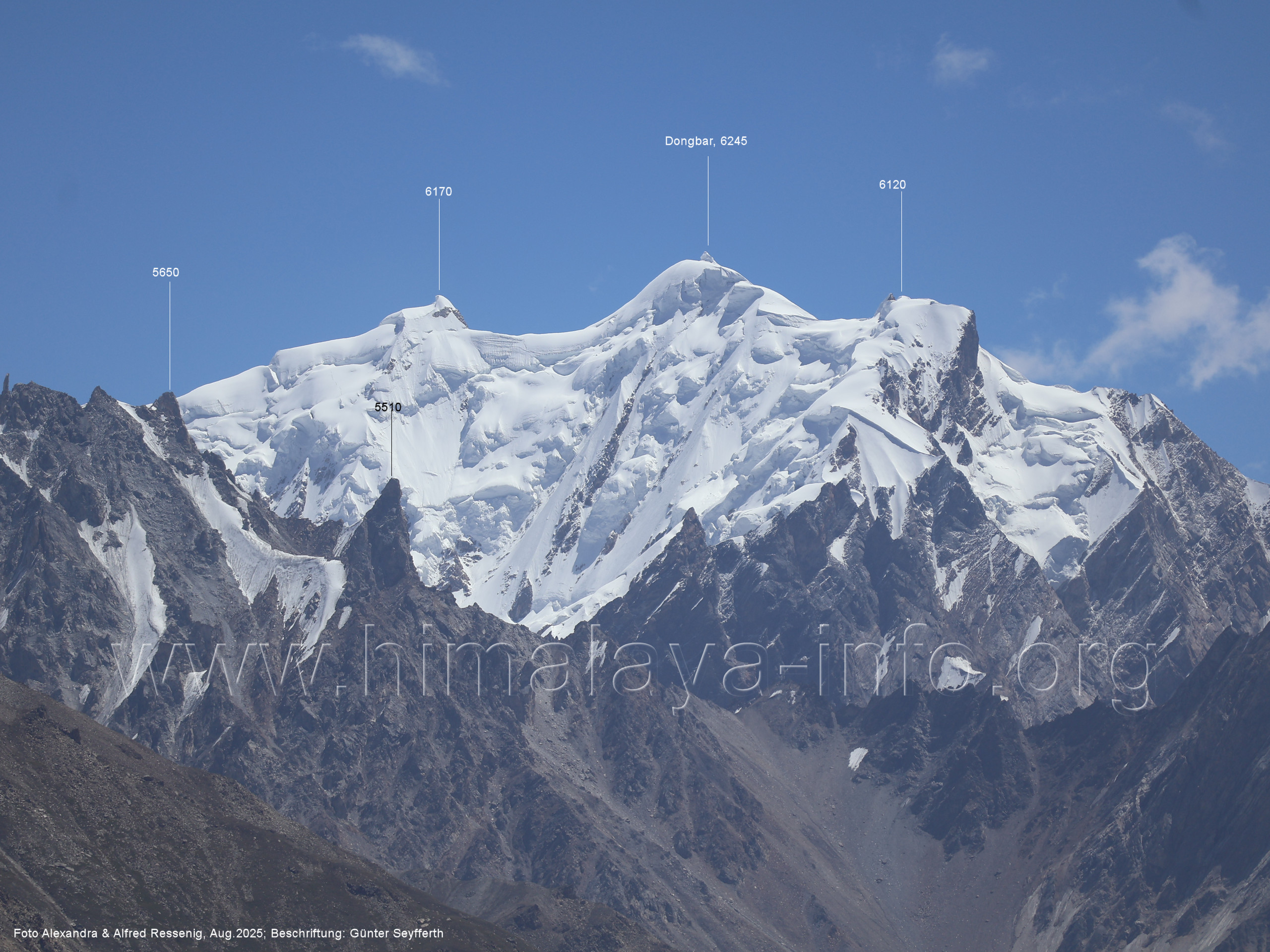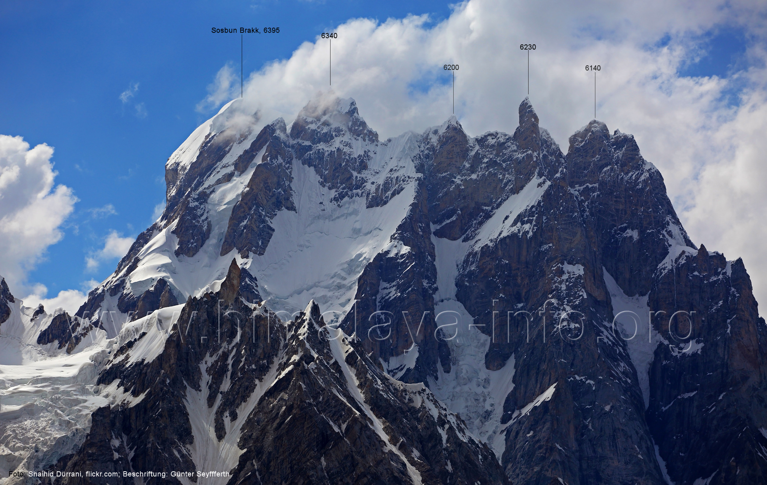 am Ghur-Gletscher auf. Foto: Marek Romanovicz; Beschriftung: Günter Seyfferth (183) Teleblick vom Lagerplatz 4600 auf dem Noafo-Gletscher nach Süden zum Gama Sokha Lumbu Foto: Alexandra & Alfred Ressenig, Aug. 2025; Beschriftung: Günter Seyfferth (184) Blick vom Lagerplatz 4600 auf dem Biafo-Gletscher nach Süden zu den markanten Gipfeln 5760 und 5815 am East Ghur-Gletscher Foto: Alexandra & Alfred Ressenig, Aug. 2025; Beschriftung: Günter Seyfferth (185) Blick vom Lagerplatz 4600 auf dem Biafo-Gletscher nach Süd-Südwesten zum Peak 5980 Bitte vergleichen Sie mit Bild Nr. 181. Foto: Shahid Durrani, flickr.com; Beschriftung: Günter Seyfferth (186) Blick vom Lagerplatz 4600 auf dem Biafo-Gletscher nach Südwesten mit Sosbun Brakk (6395 m) und Broad Tower (6195 m)