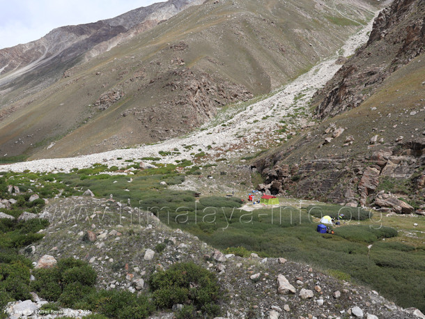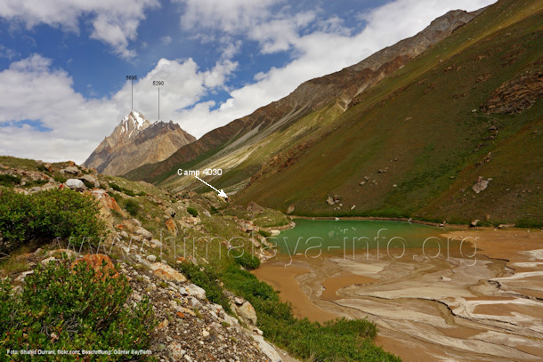 Am Fuß von Peak 5550 liegt der Lagerplatz Uzun. Foto: Guglielmo di Camillo; Beschriftung: Günter Seyfferth