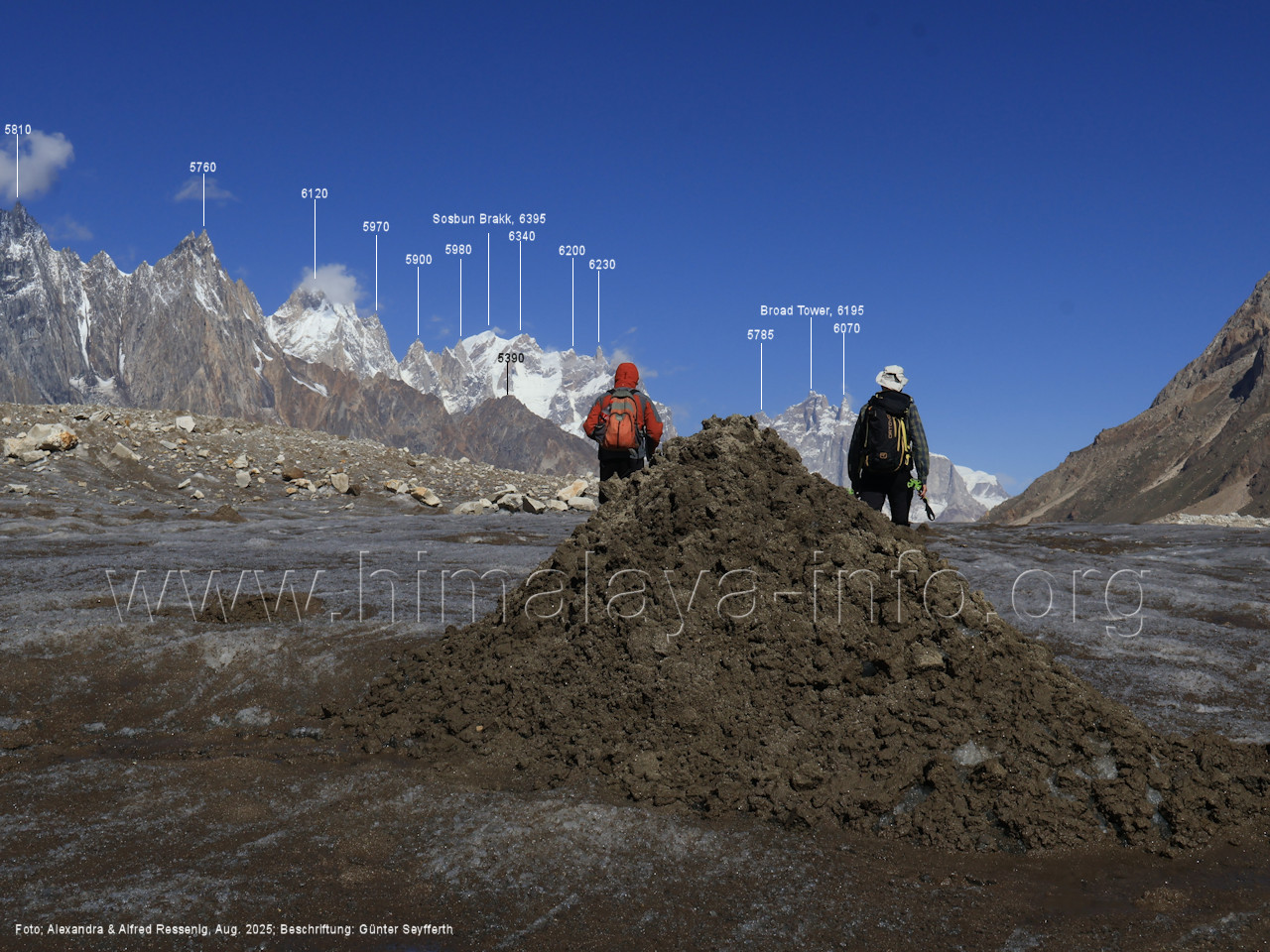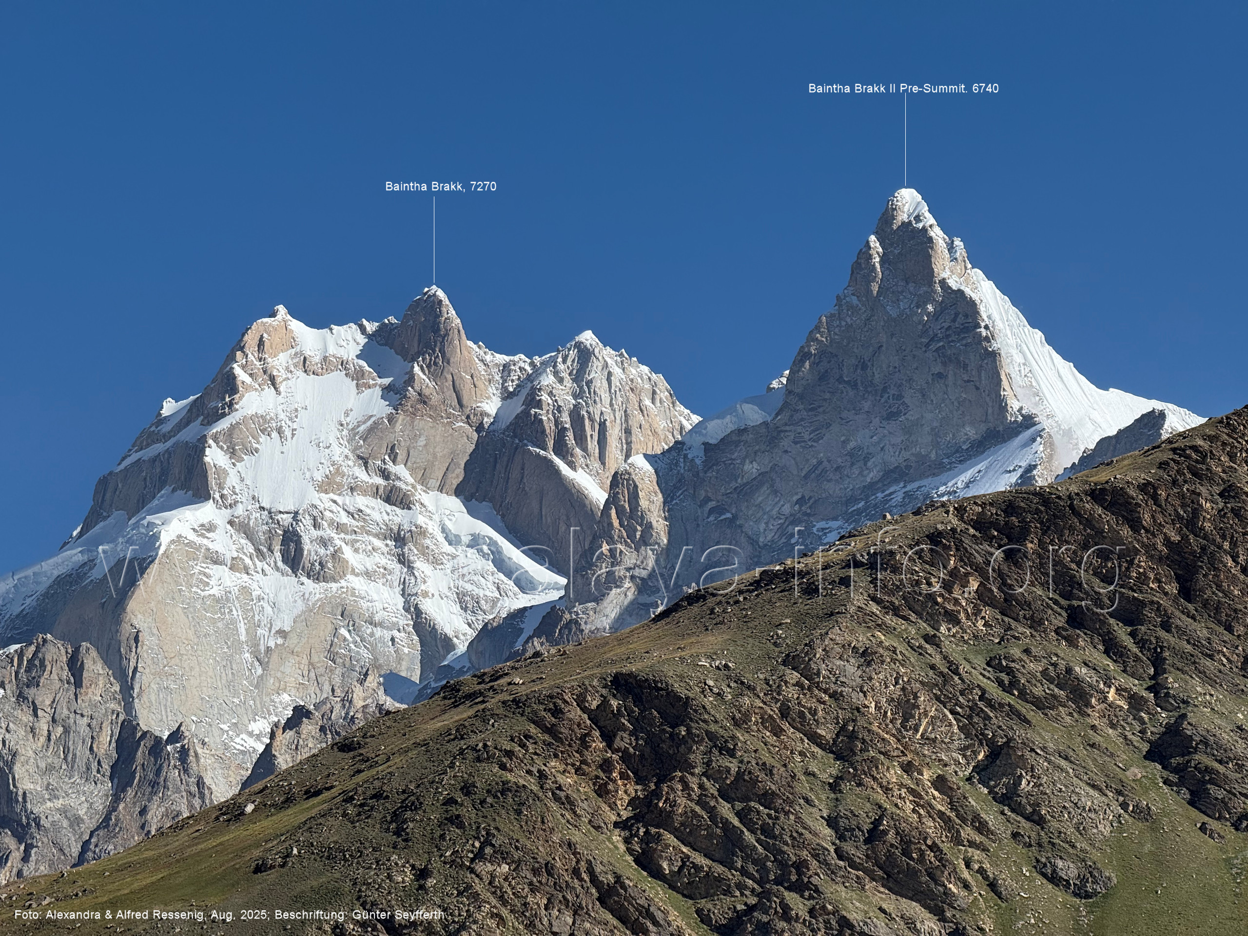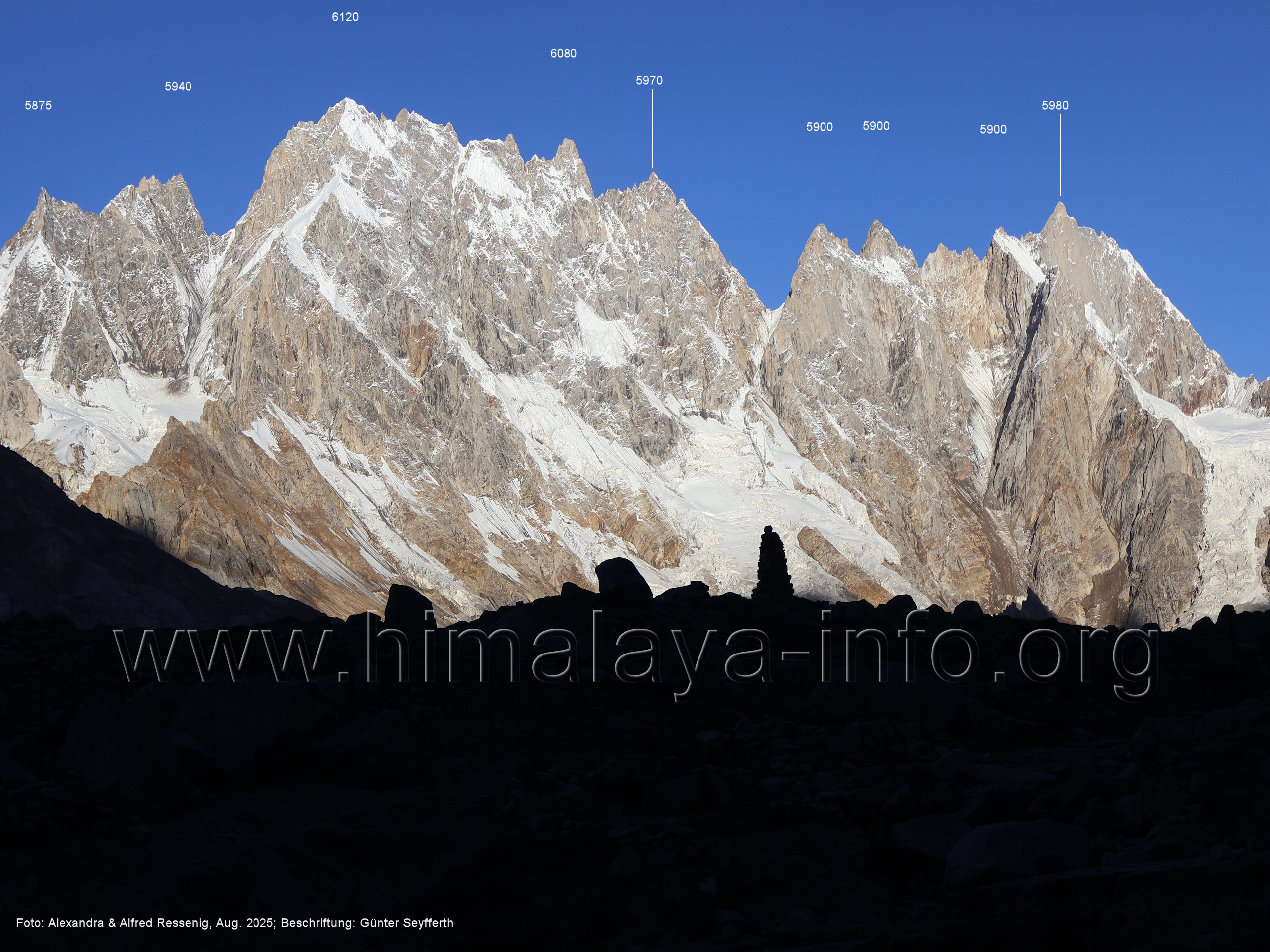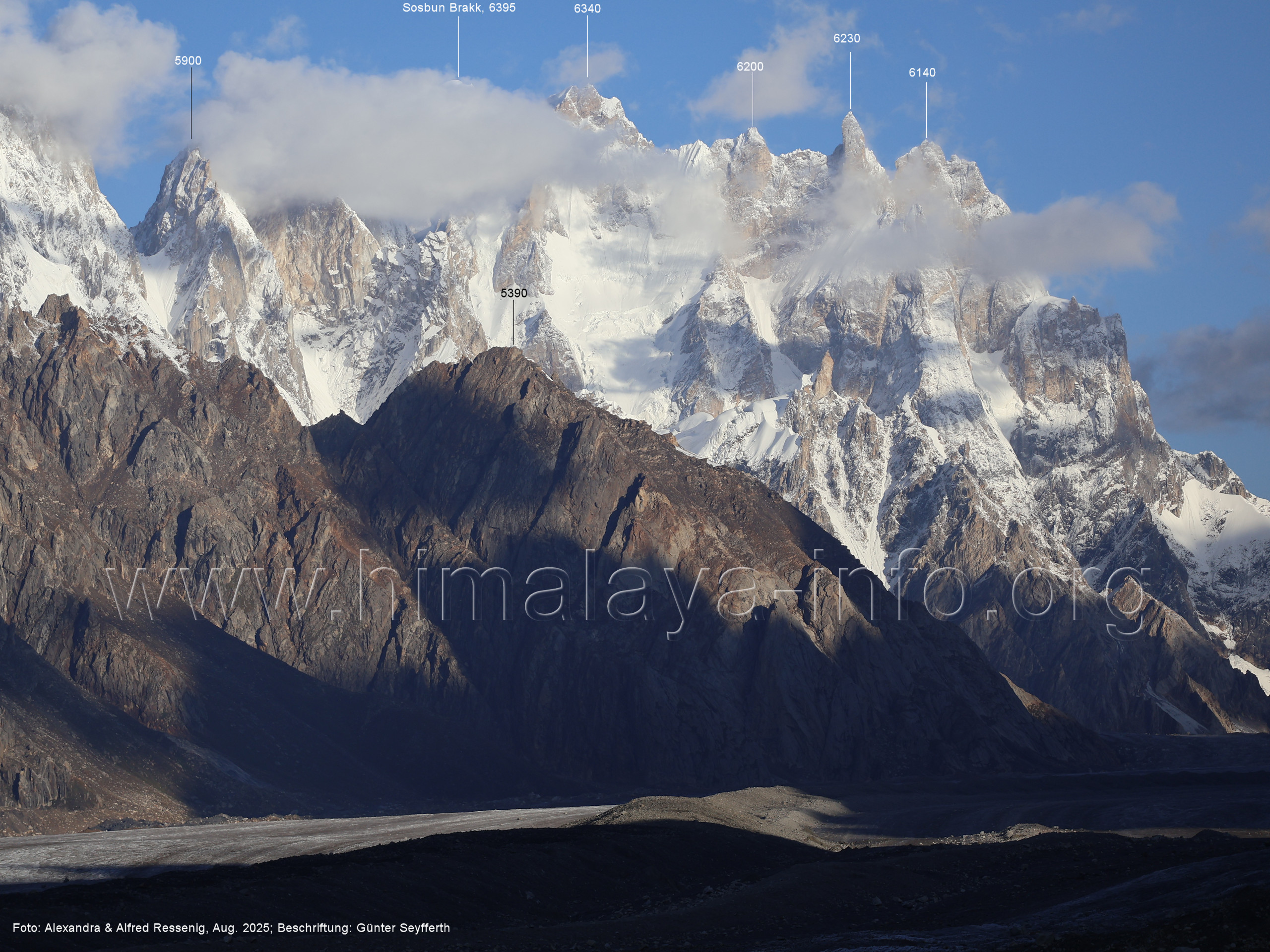 Der Sosbun Brakk ist der höchste Gipfel am Südwestrand des Biafo-Gletschers. Foto: Alexandra & Alfred Ressenig, Aug. 2025; Beschriftung: Günter Seyfferth
