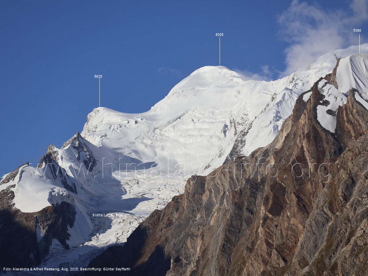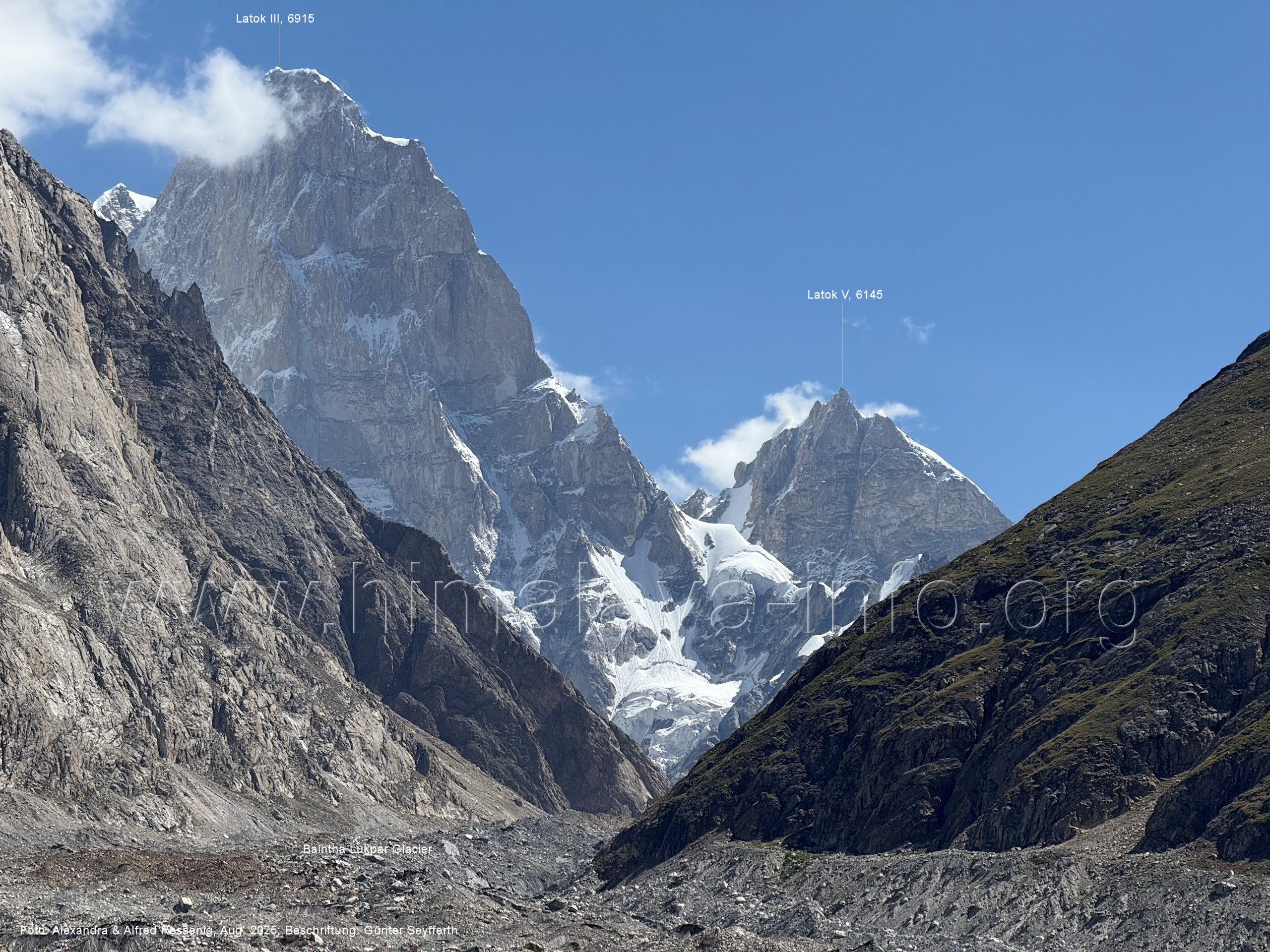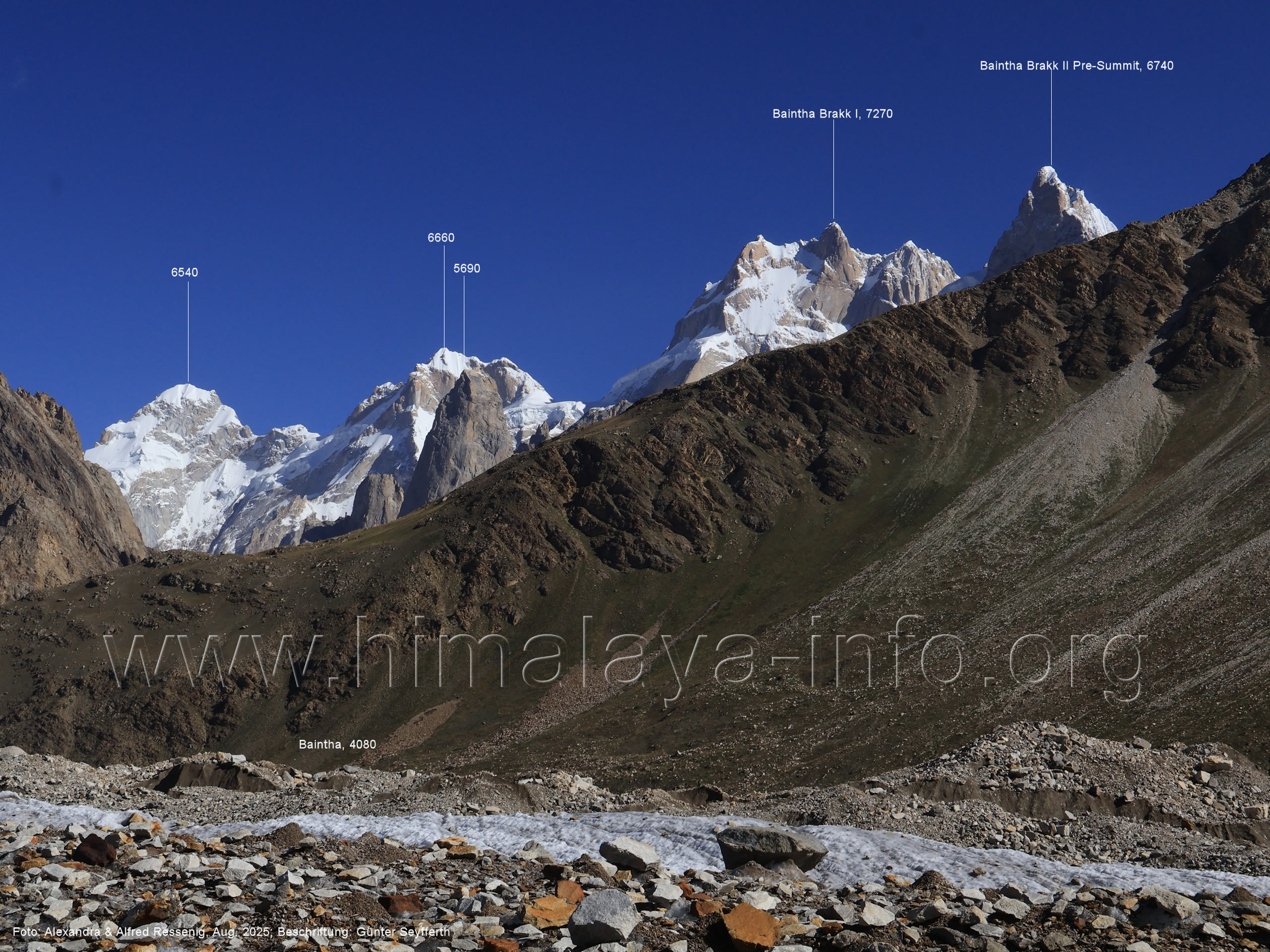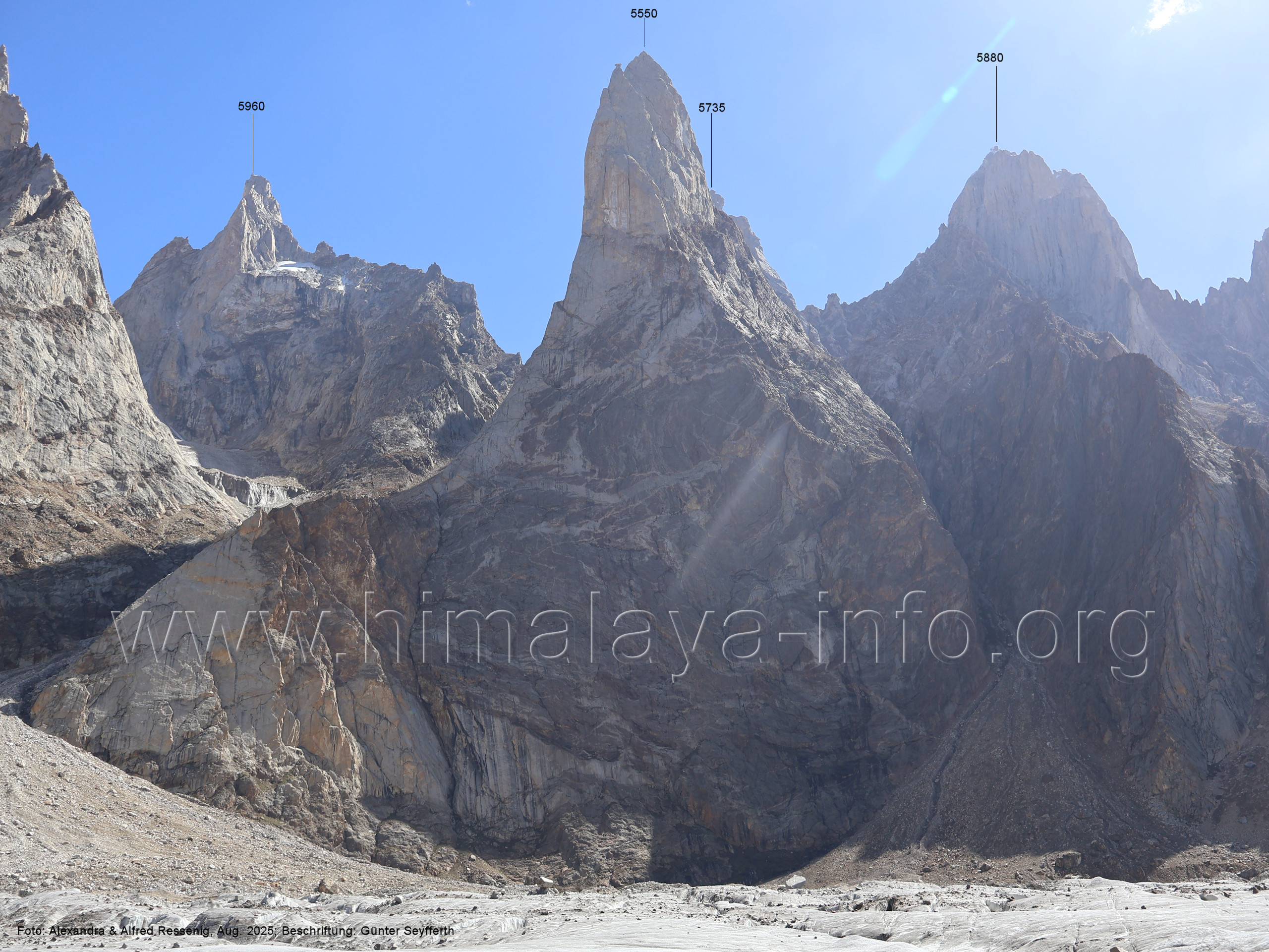 Der Sosbun Brakk ist der höchste Gipfel am Südwestrand des Biafo-Gletschers. Foto: Alexandra & Alfred Ressenig, Aug. 2025; Beschriftung: Günter Seyfferth
