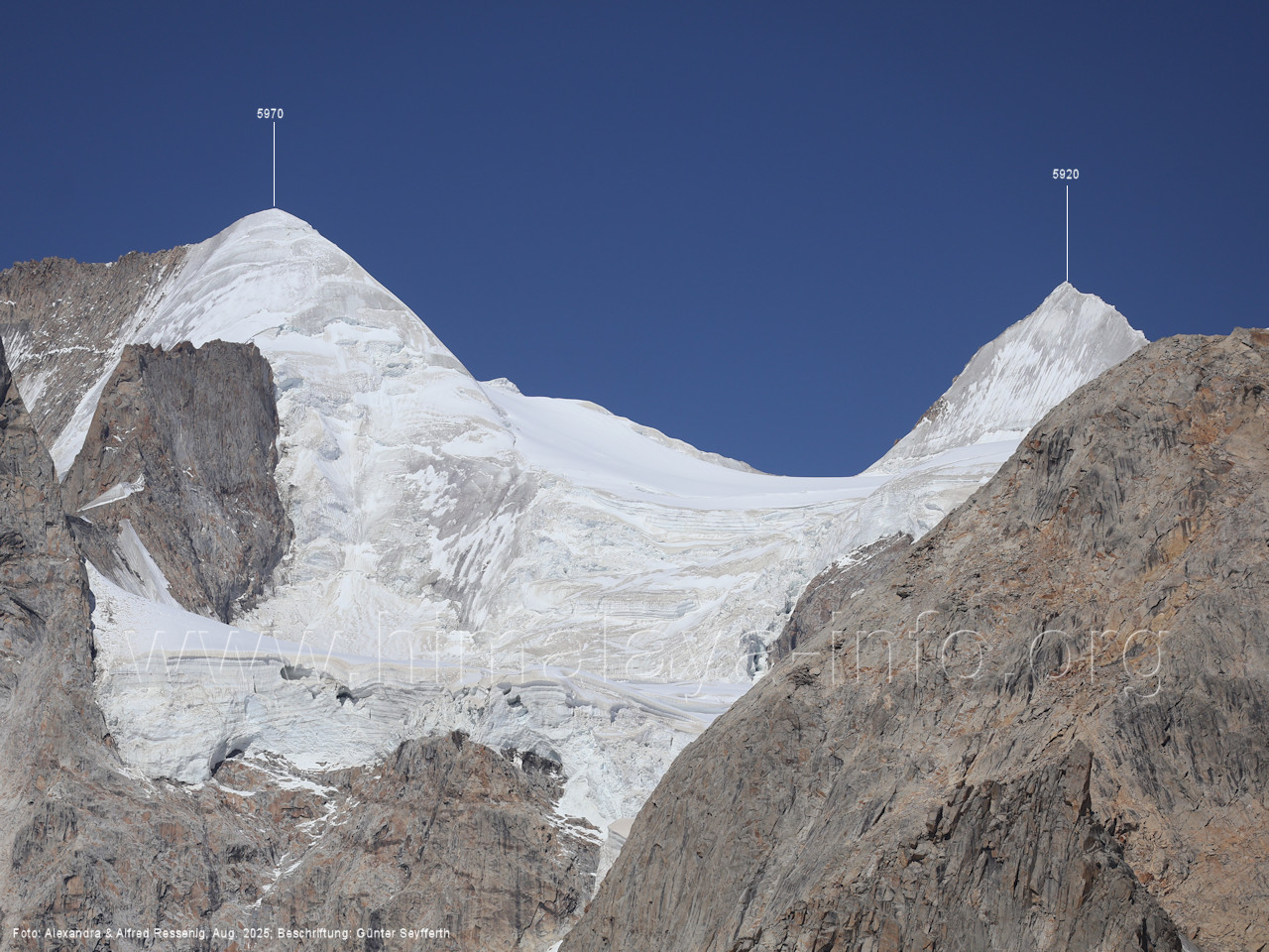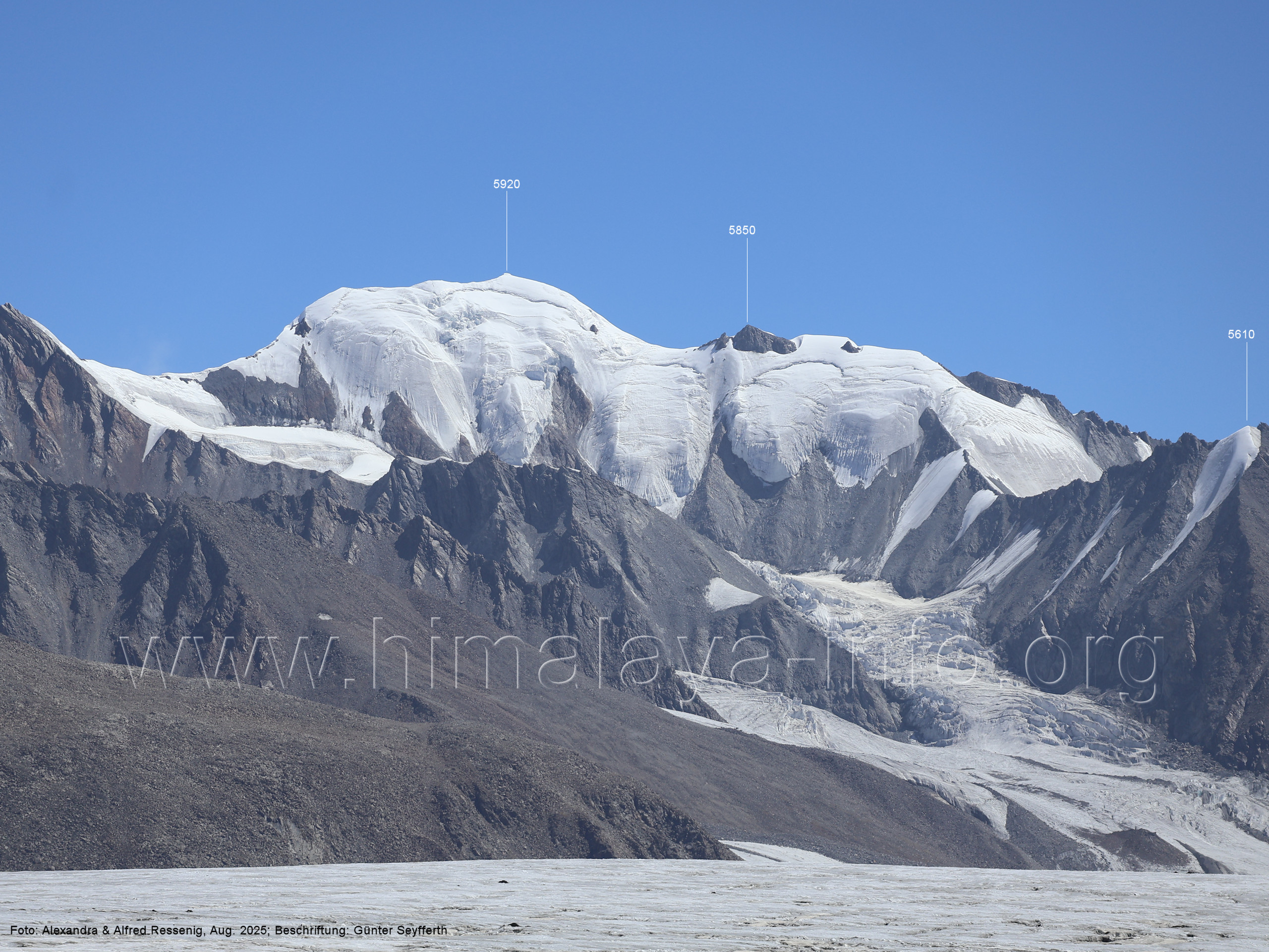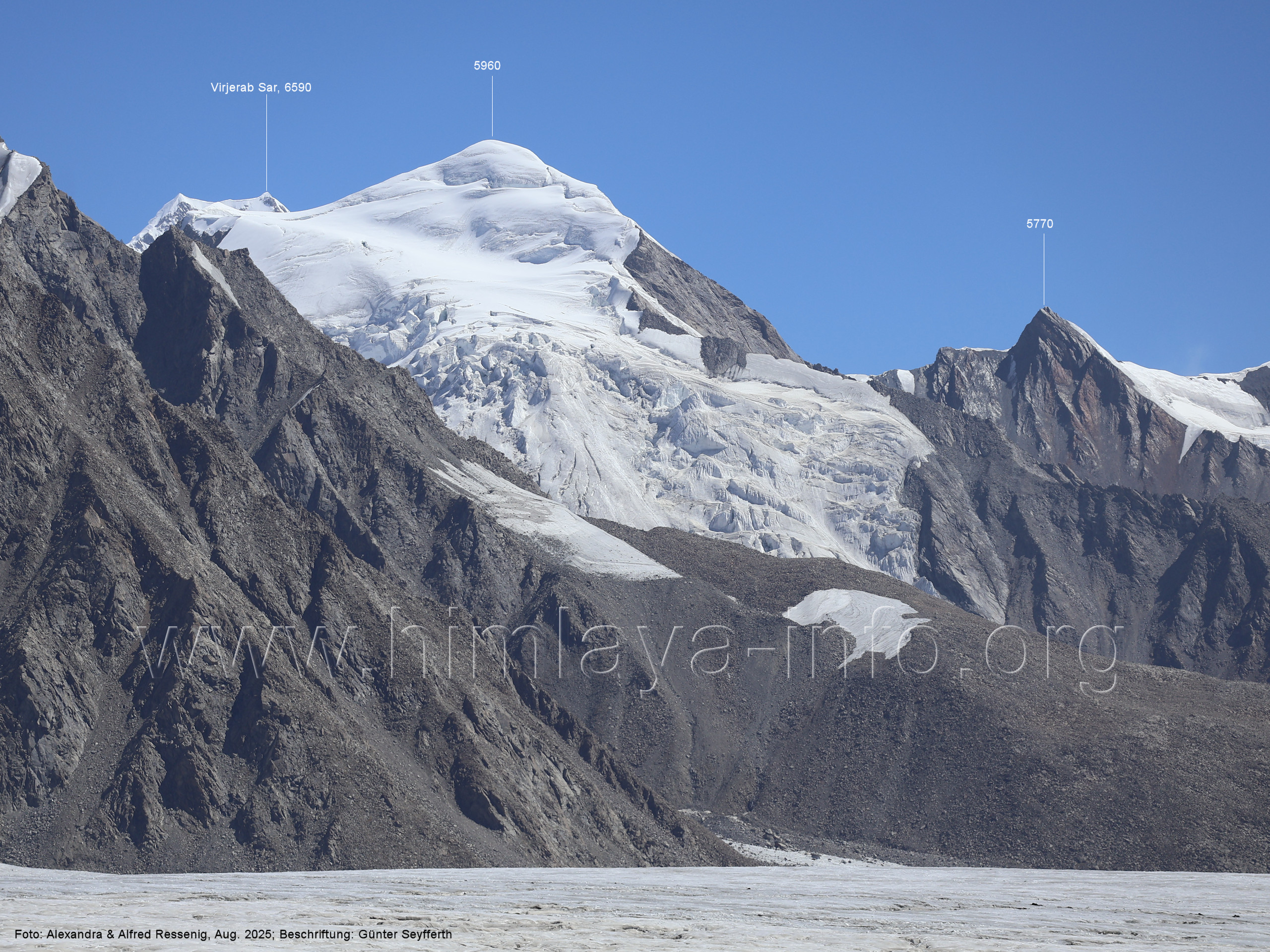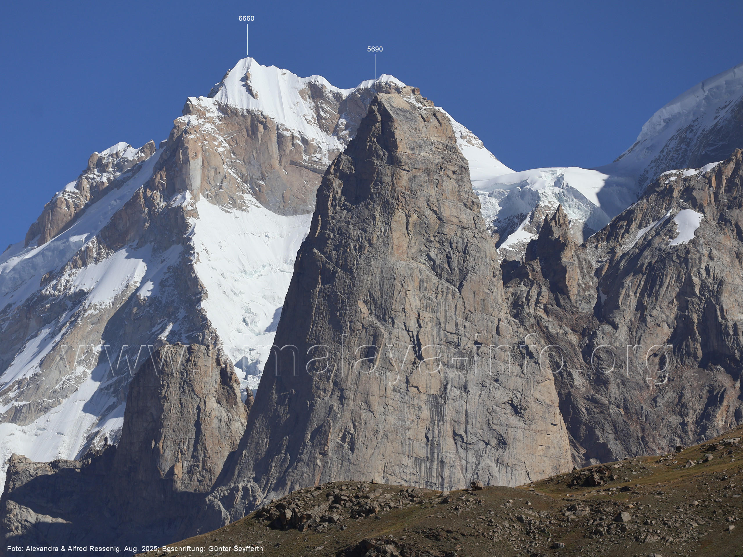 Der Sosbun Brakk ist der höchste Gipfel am Südwestrand des Biafo-Gletschers. Foto: Alexandra & Alfred Ressenig, Aug. 2025; Beschriftung: Günter Seyfferth