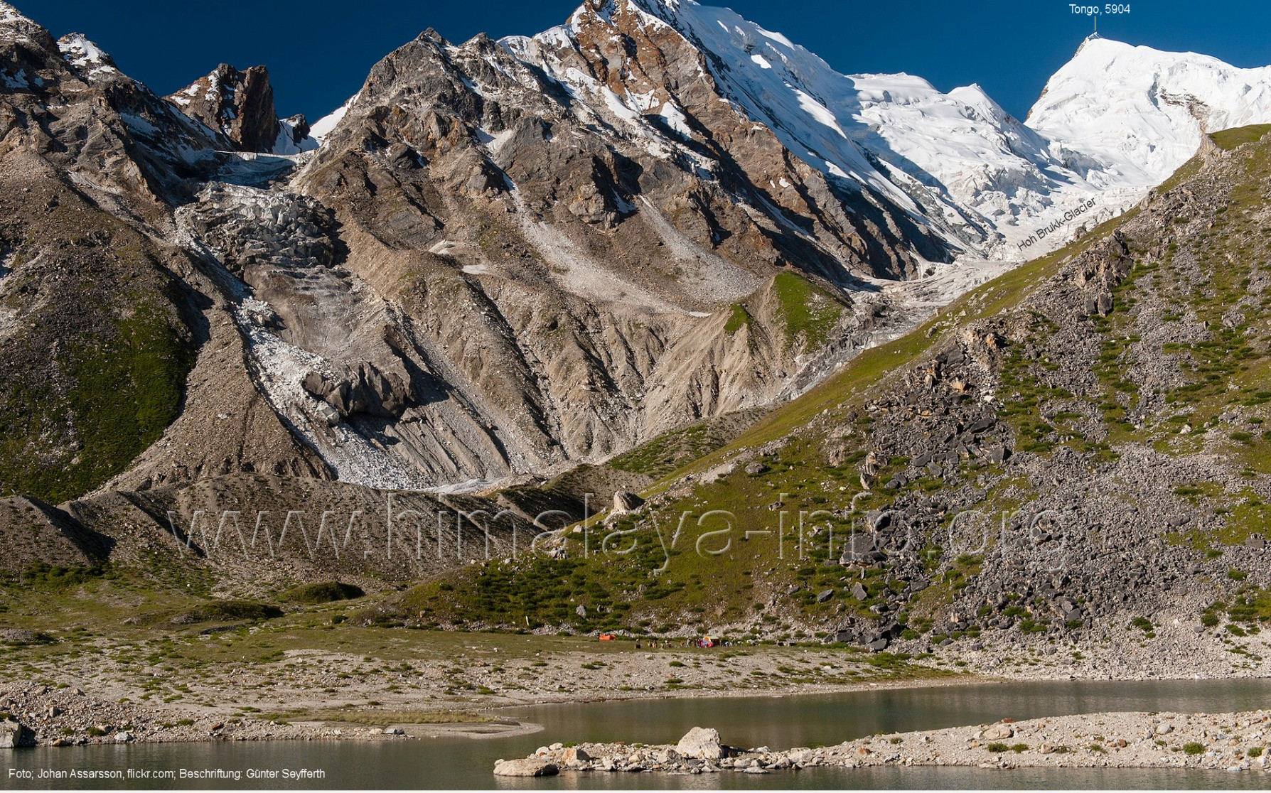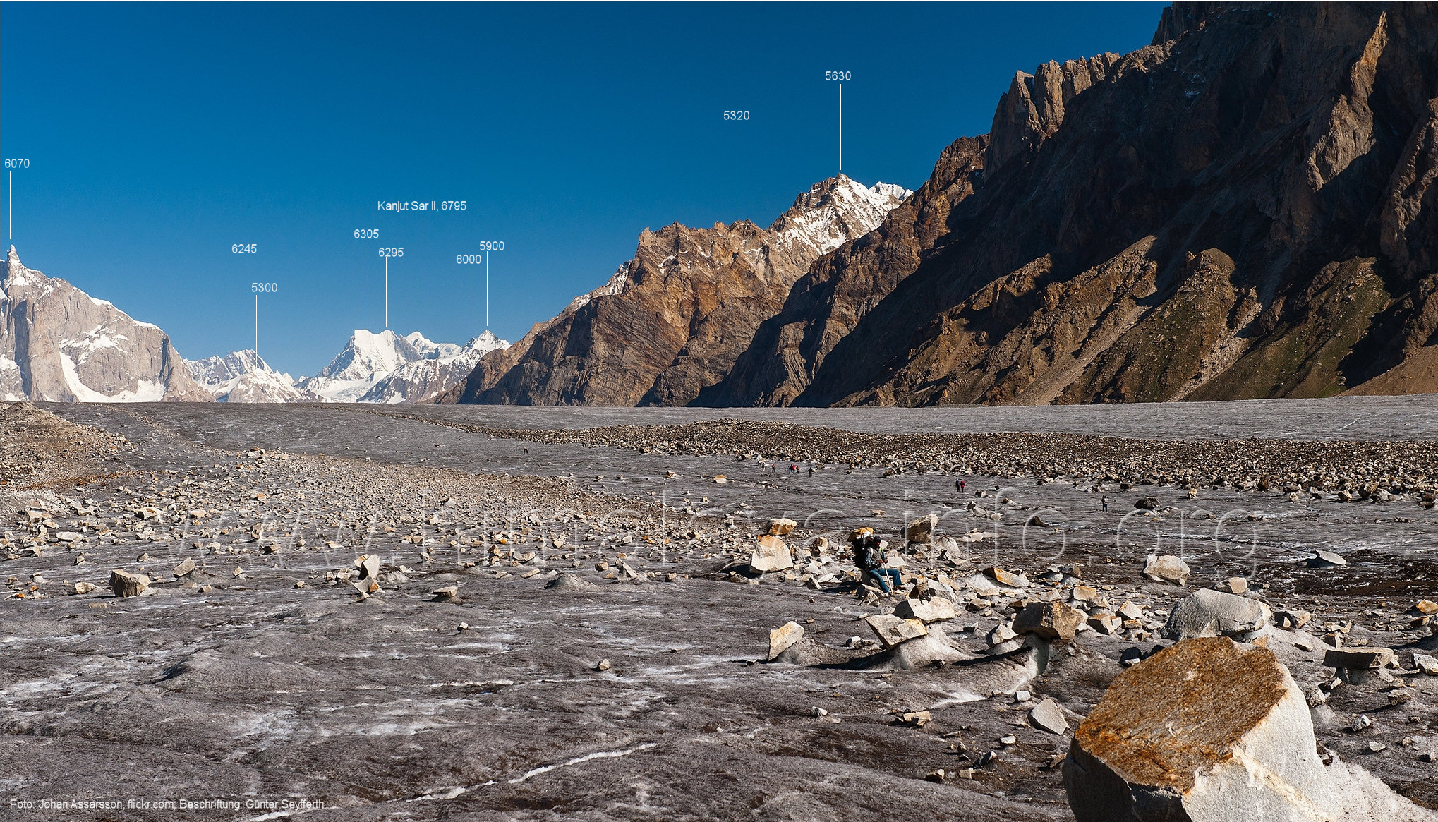 Höhe, Foto: Roger Nix, flickr.com, Juli 2022; Beschriftung: Günter Seyfferth B2 - Am unteren Biafo-Gletscher bis Baintha
