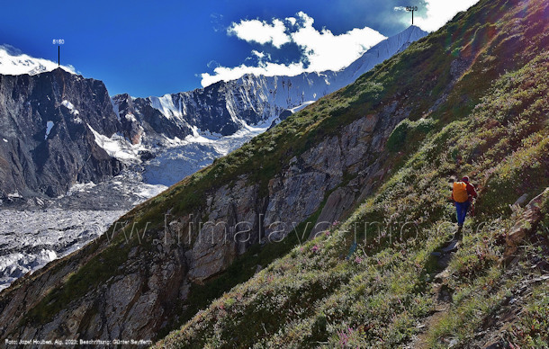 Auf dem Bild befindet sich ein Trekker auf dem Weg talabwärts; er kommt vom
