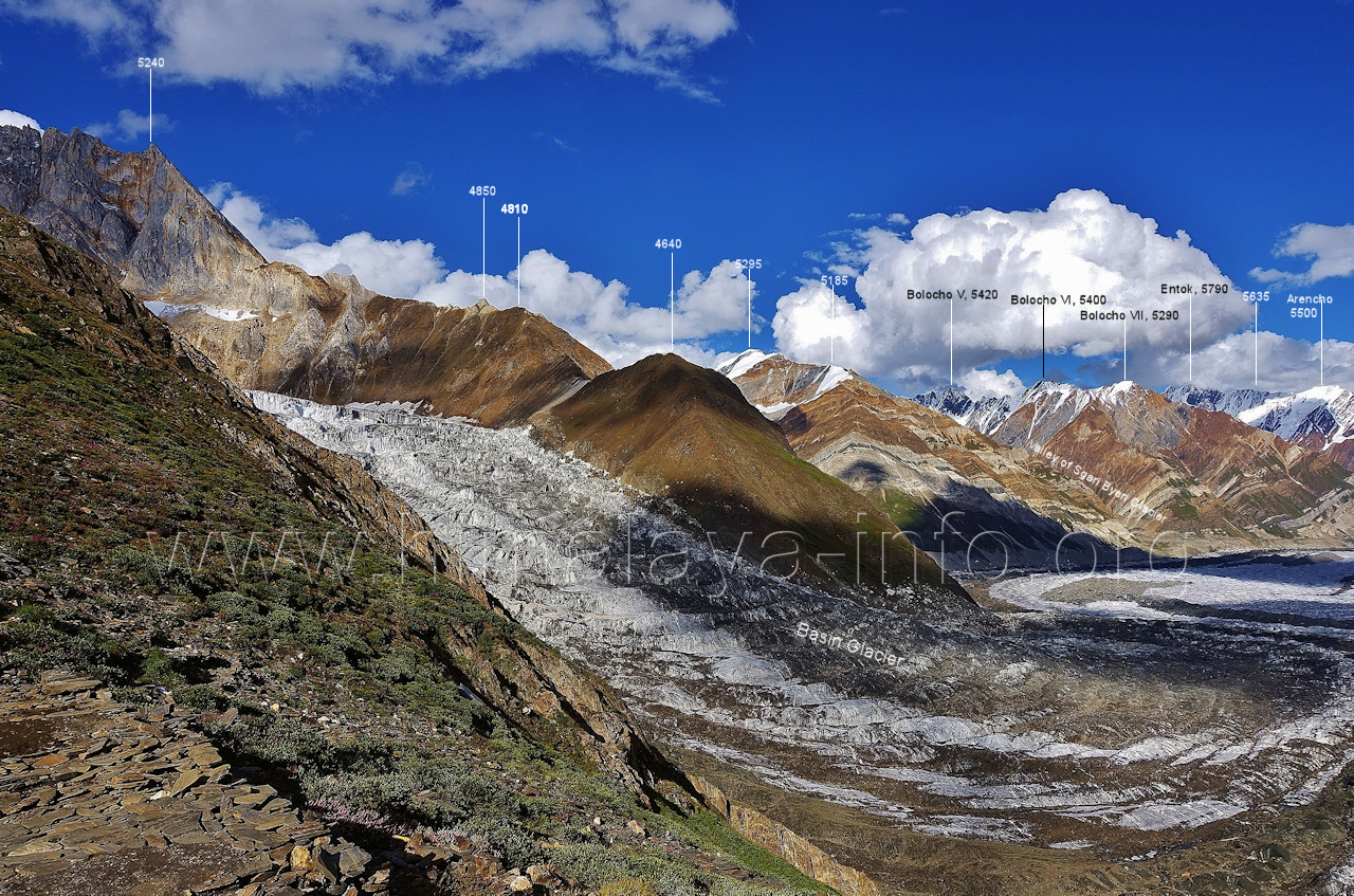 zwischen Goropha-Gletscher im Westen und Remanedok Kushum-Gletscher im