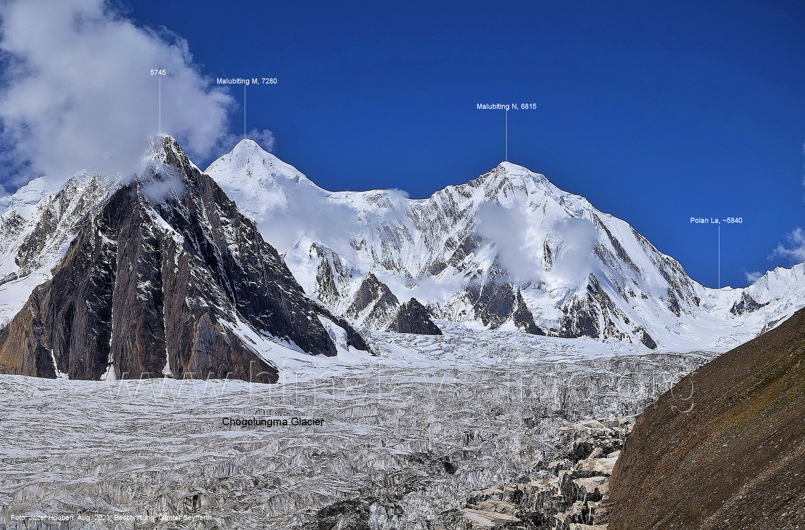 Chogolungma-Gletschers. Foto: Jozef Houben, Aug. 2023; Beschriftung: Günter Seyfferth