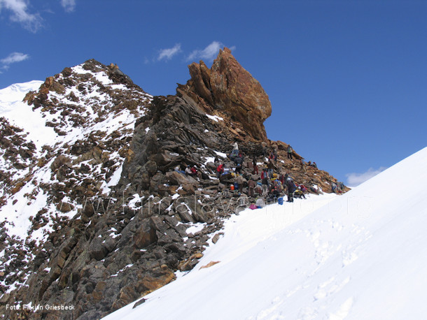 Südwestgrat. Rechts unten sieht man die Moräne des Mani-Gletschers,