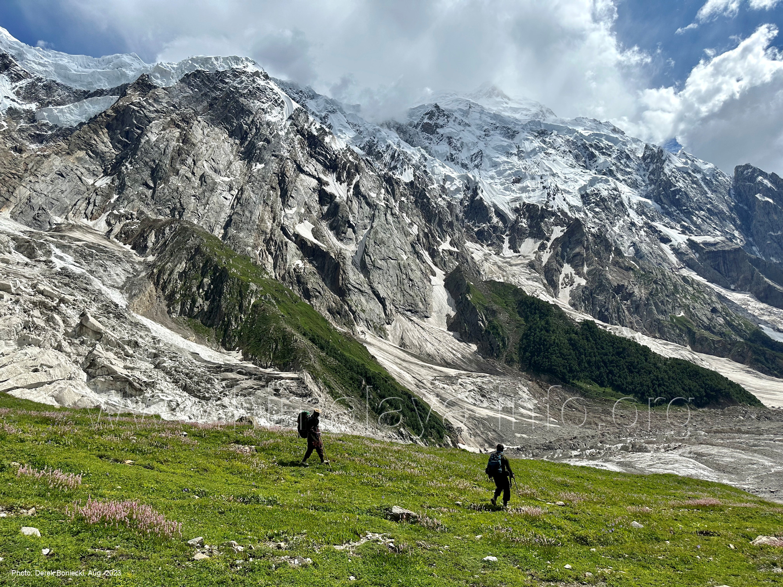 Südrand des Hispar-Gletschers. Foto: Jozef Houben, Aug. 2023; Beschriftung: Günter Seyfferth Nun muss man sich im Bereich des Kero Lungma einen