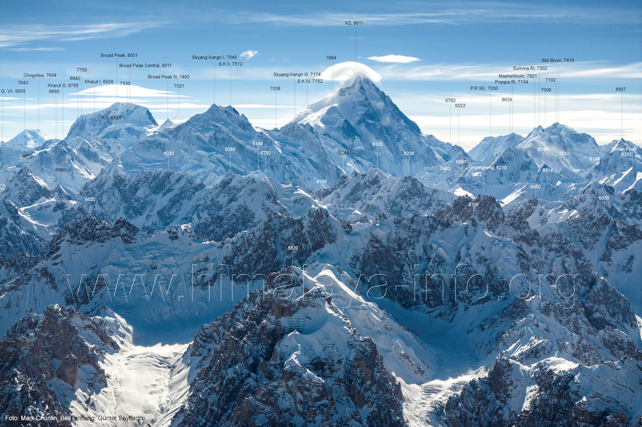 II (8035 m) und Gasherbrum I (8080 m). Man kann also die
