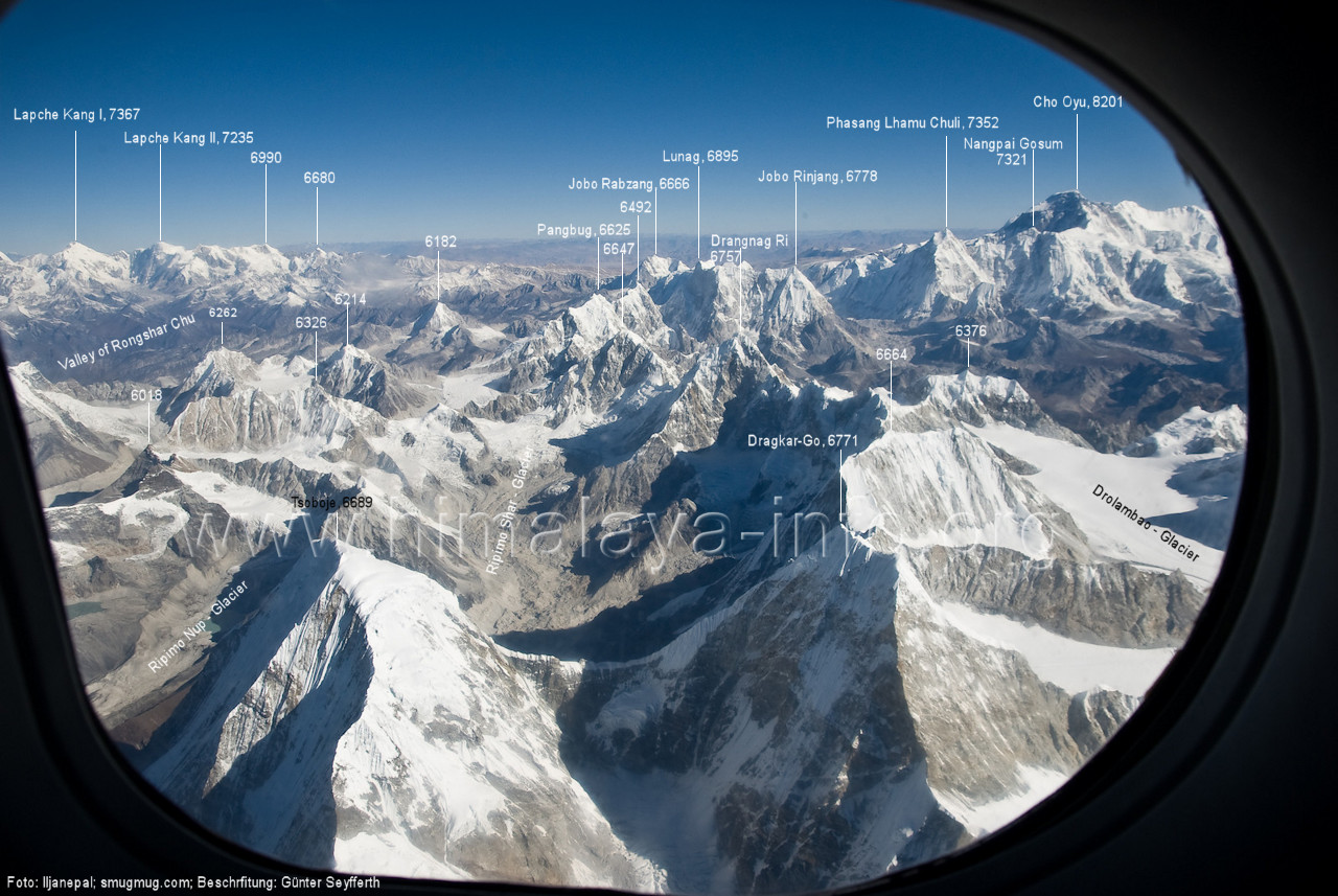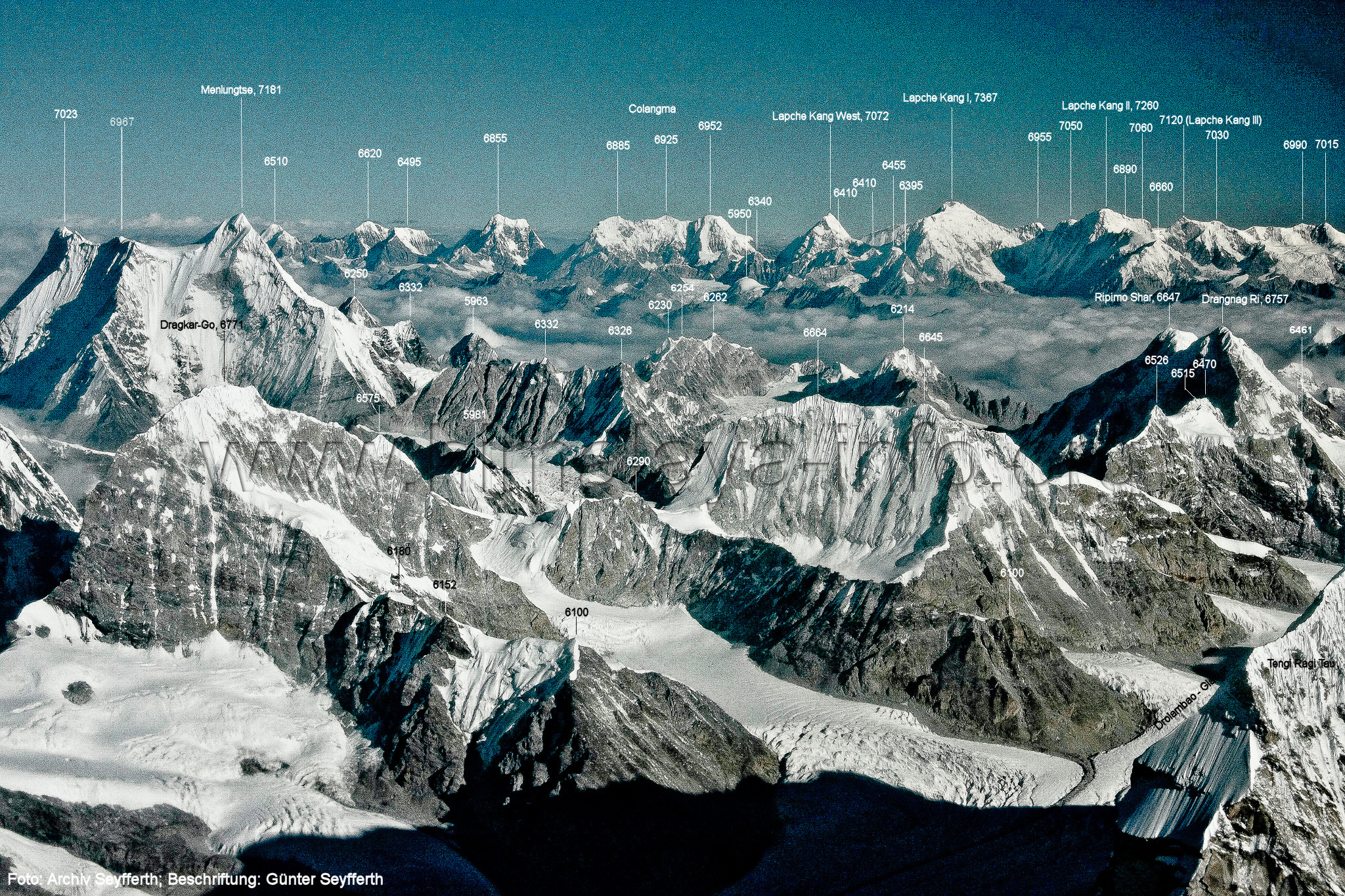 als dieses Bild vermuten lässt. Foto: Pierre Martin (www.martinpierre.fr); Beschriftung: Günter Seyfferth (180) Blick vom Gyajo La (4877 m) nach Südwesten bis Westen